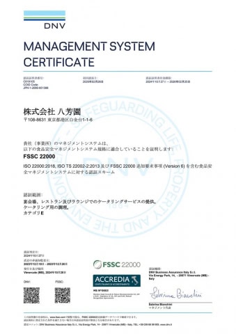 食品安全マネジメントシステムの国際規格『FSSC22000』において、調理業を対象とする「カテゴリーE」の認証を取得(業界2社目)