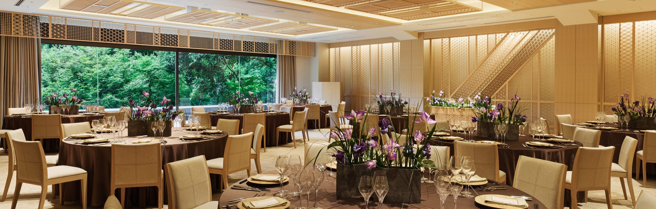 主题是拼花的宝箱。自然美和传统美并存,充满温暖的宴会厅。专用露台空间的对面是庭园的四季,柔和的光线包围着平静的片刻时光。