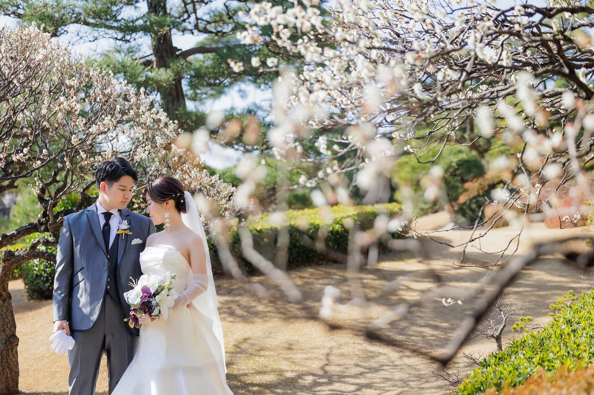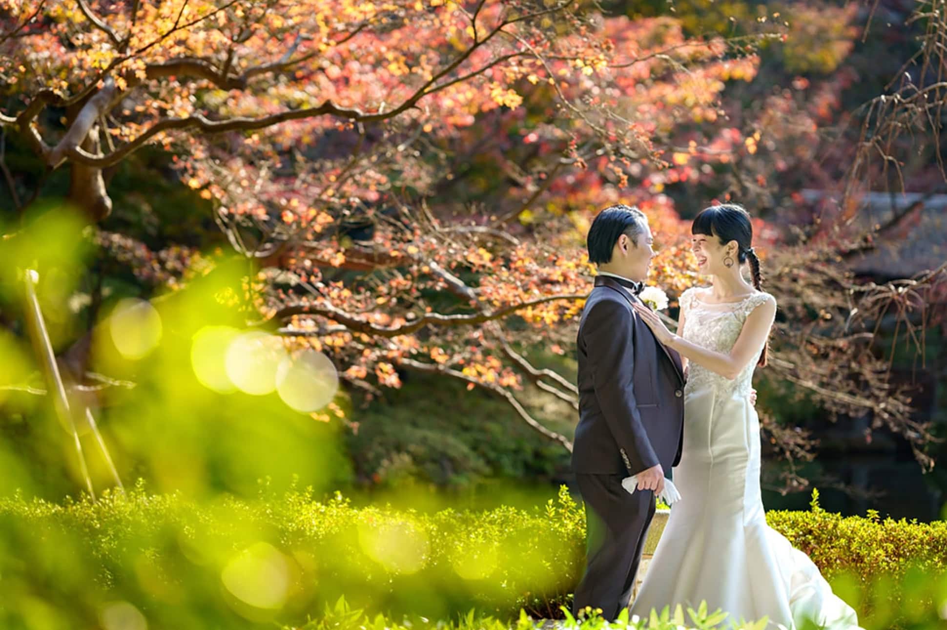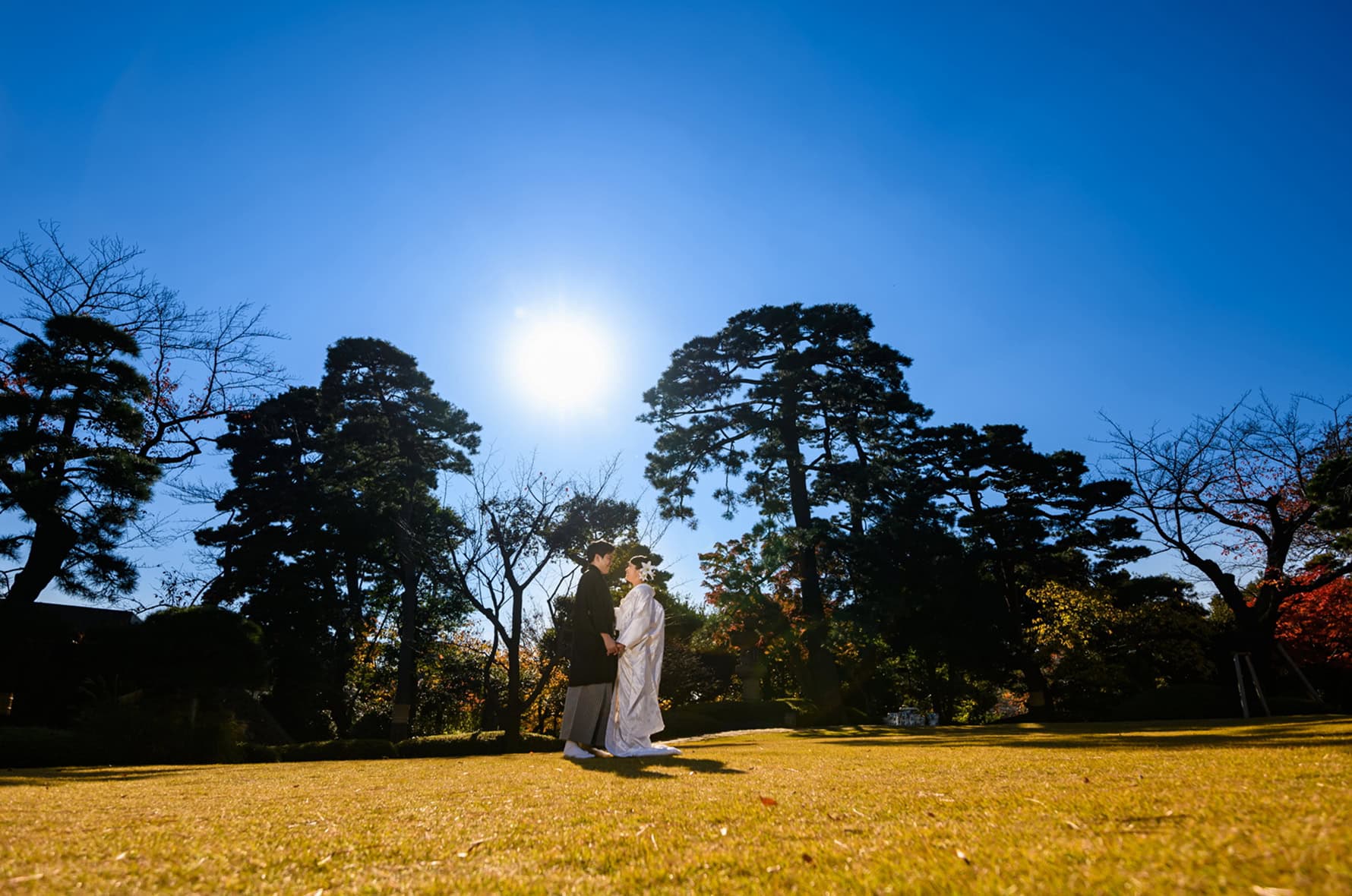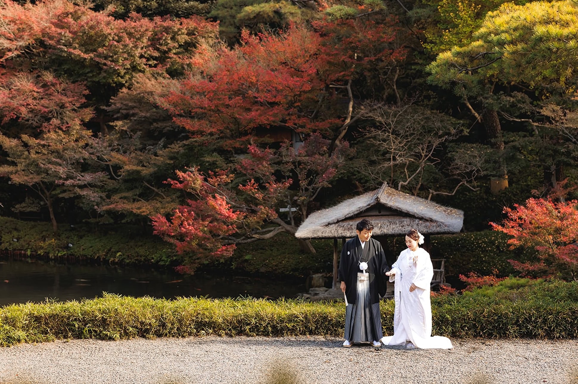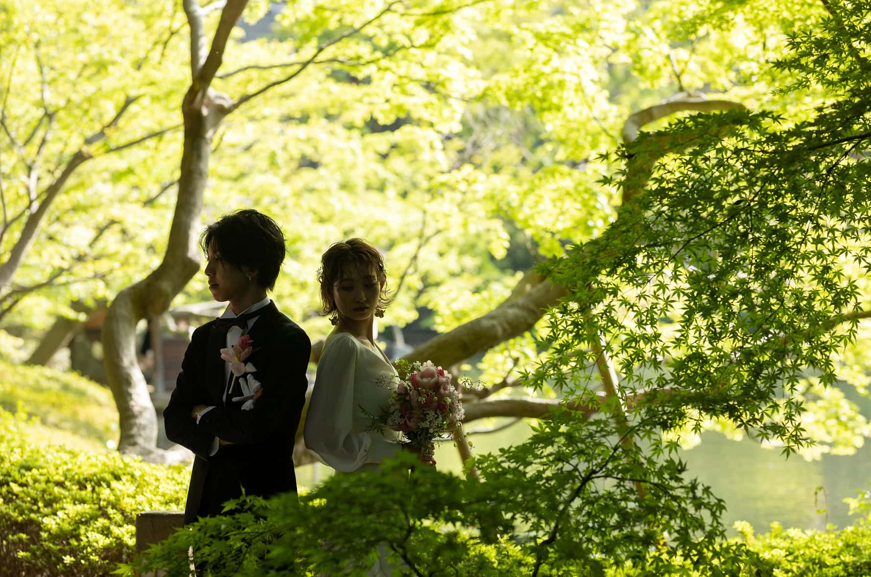 舞台は、約一万坪の敷地内に広がる広大な日本庭園。約400年の歴史を持つ庭園は、四季折々の美しい表情を見せます。庭園内の様々なスポットだけでなく、チャペルや神殿など園内には数多くのロケーションが。衣裳やおふたりのイメージに合わせて、バリエーション豊かな写真を残していただくことができます。