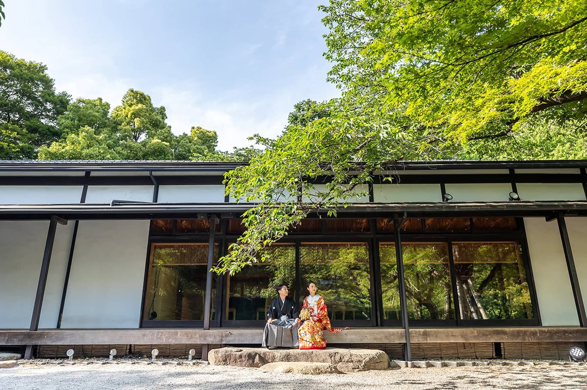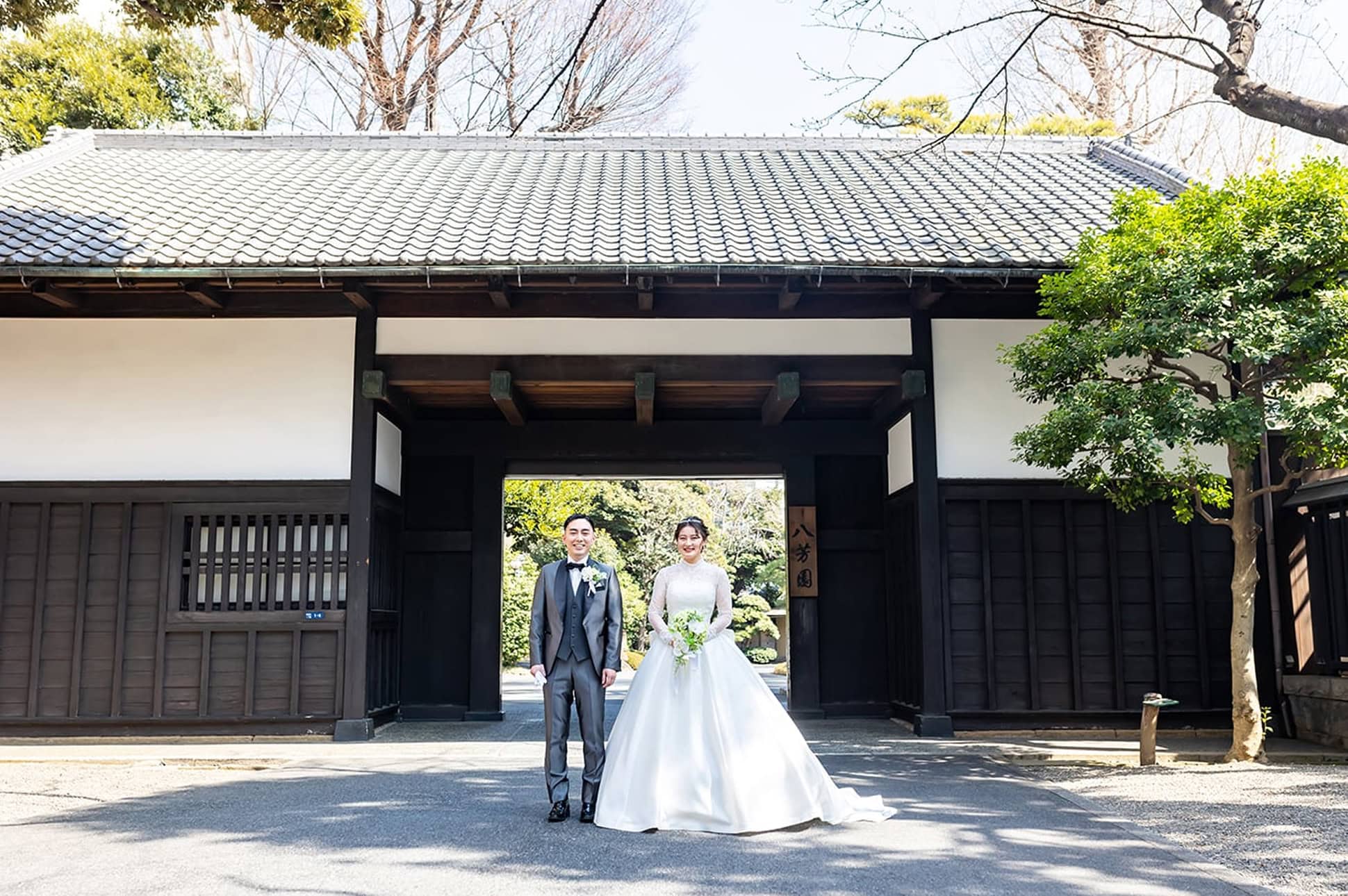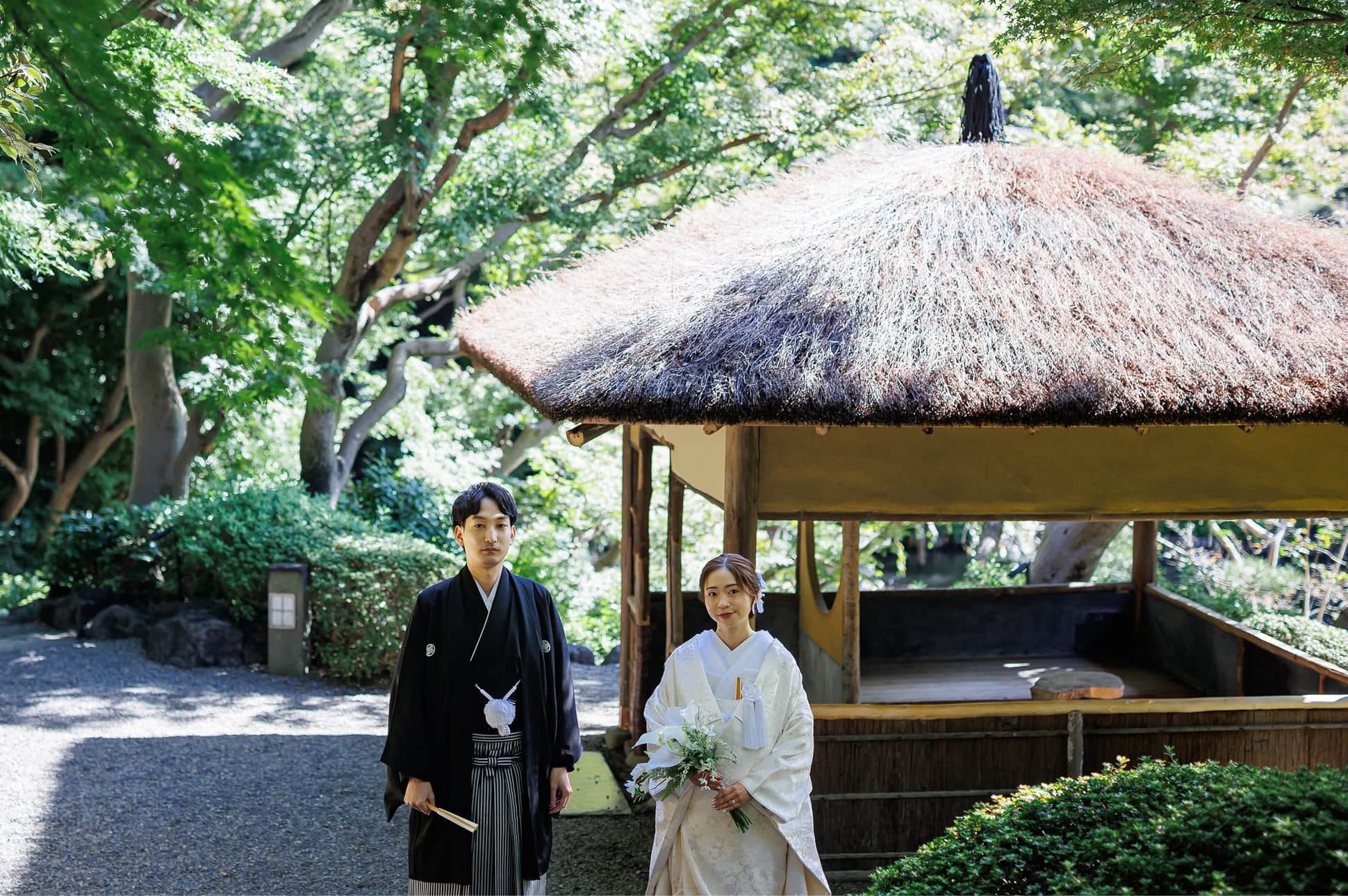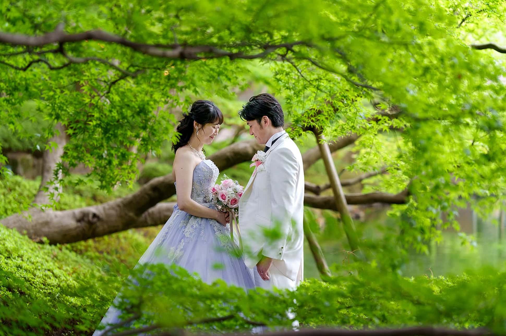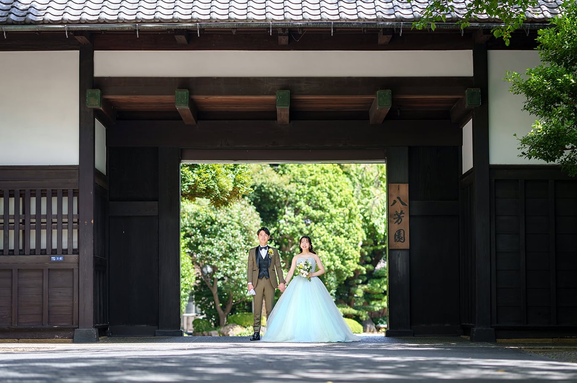 舞台は、約一万坪の敷地内に広がる広大な日本庭園。約400年の歴史を持つ庭園は、四季折々の美しい表情を見せます。庭園内の様々なスポットだけでなく、チャペルや神殿など園内には数多くのロケーションが。衣裳やおふたりのイメージに合わせて、バリエーション豊かな写真を残していただくことができます。