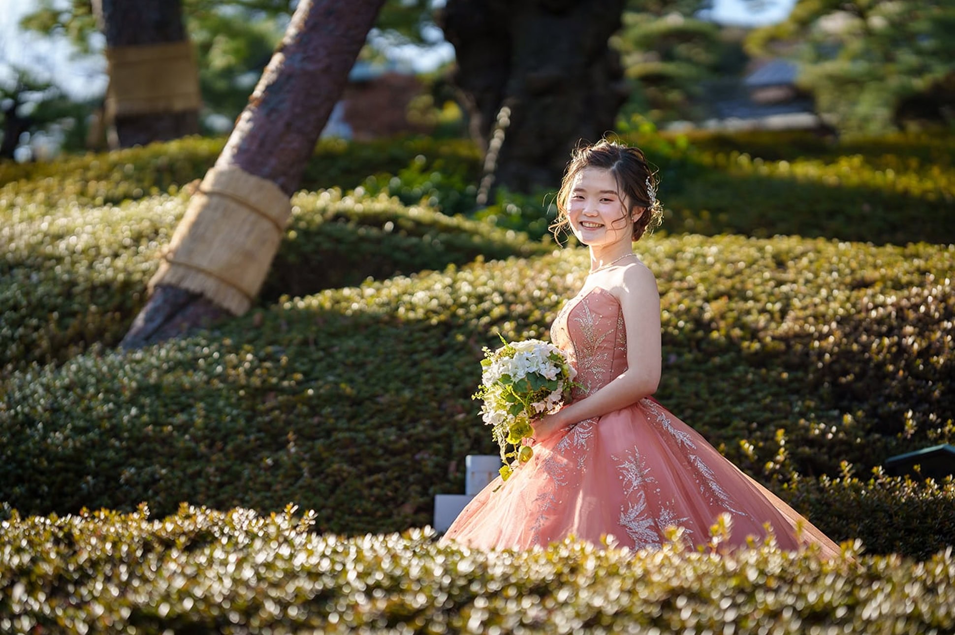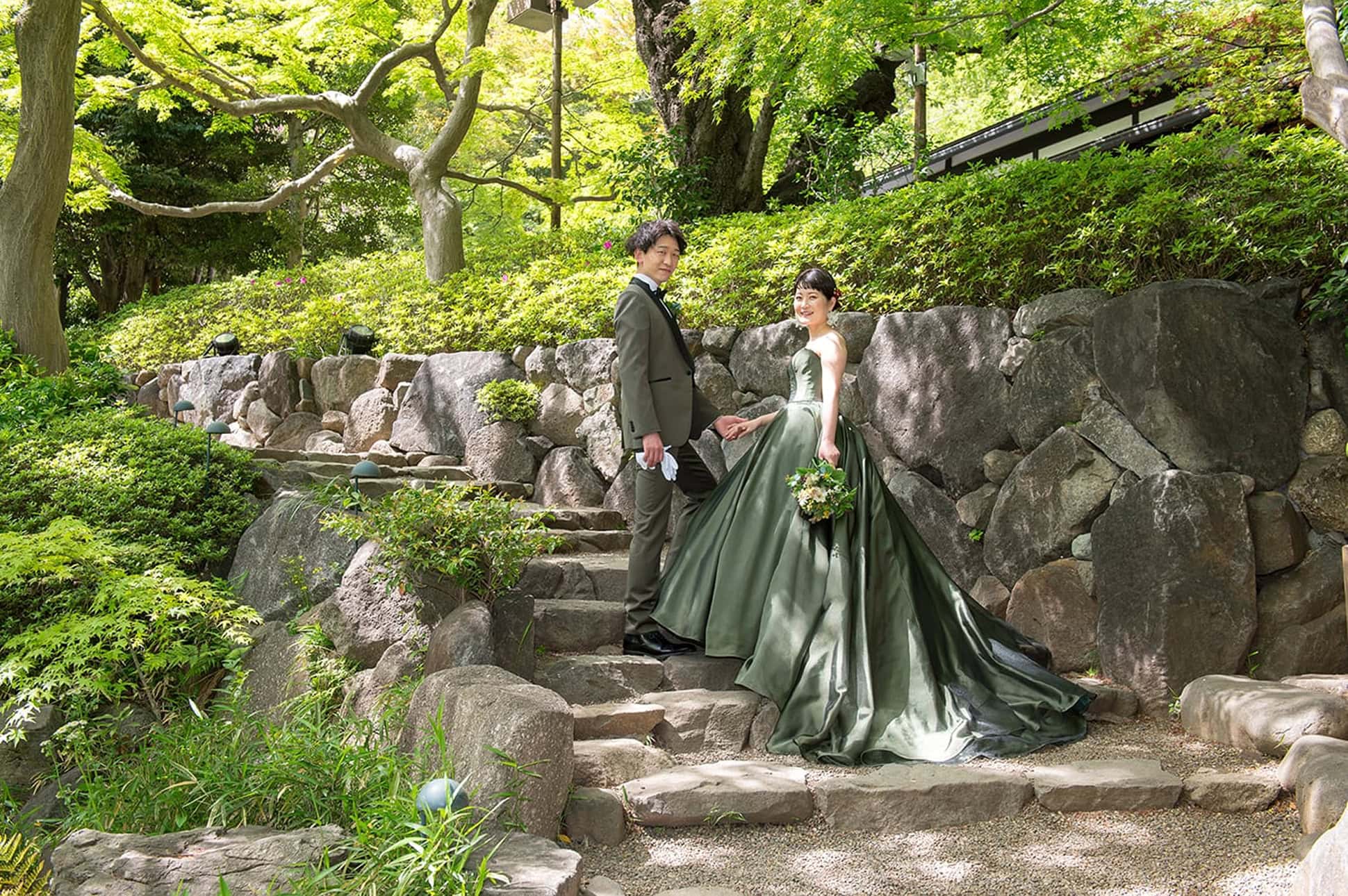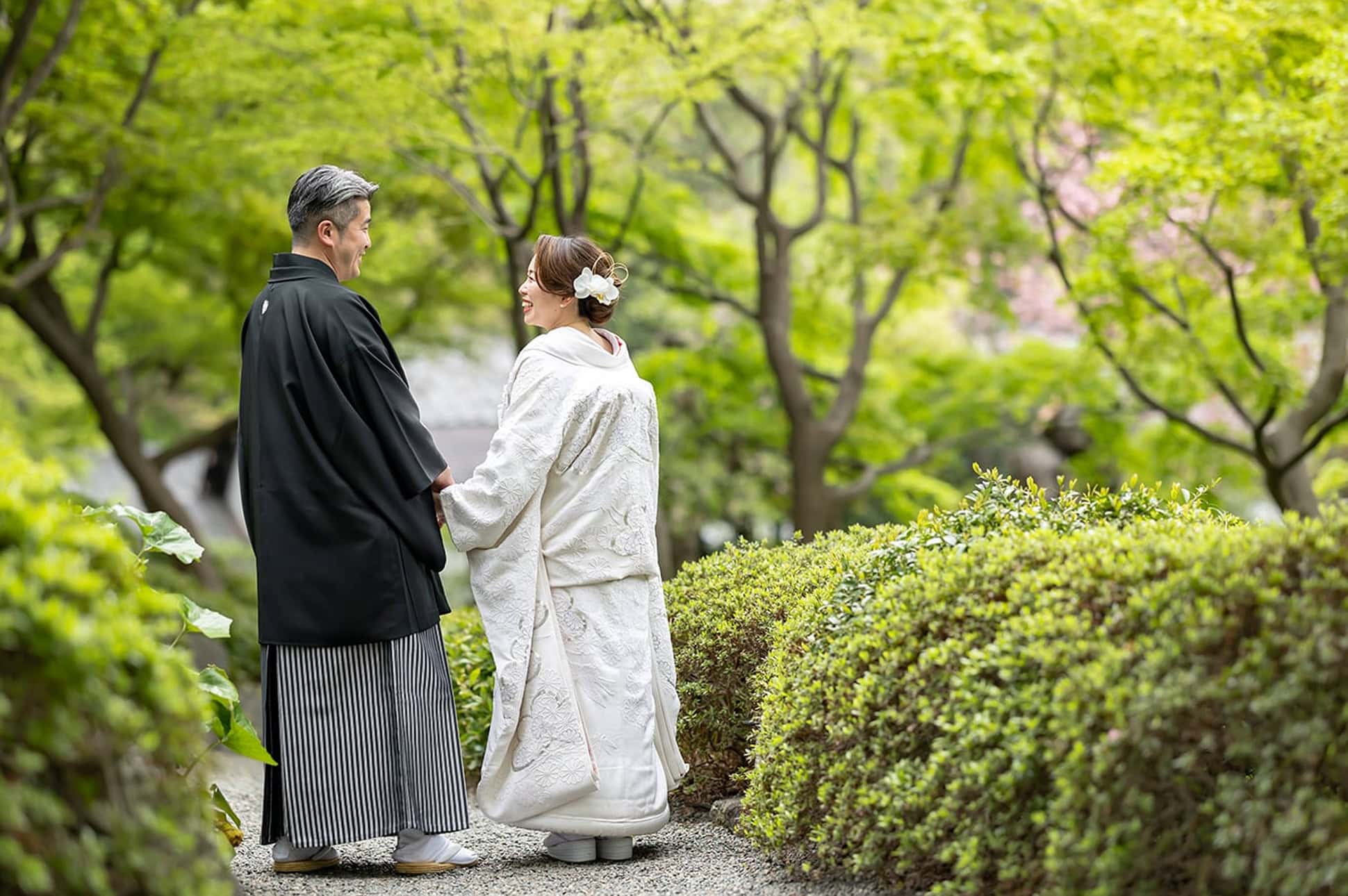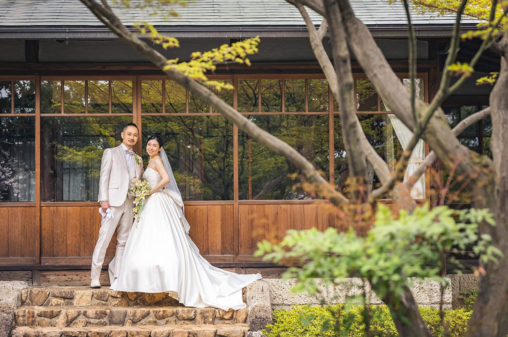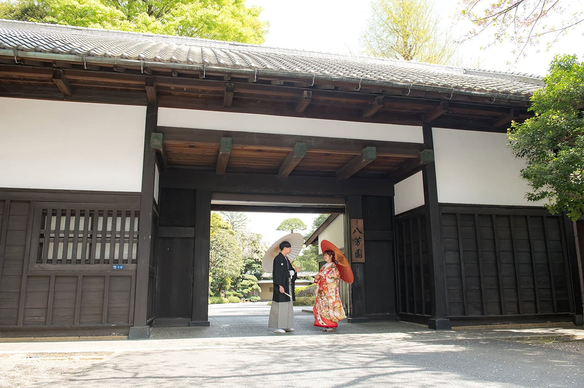 舞台は、約一万坪の敷地内に広がる広大な日本庭園。約400年の歴史を持つ庭園は、四季折々の美しい表情を見せます。庭園内の様々なスポットだけでなく、チャペルや神殿など園内には数多くのロケーションが。衣裳やおふたりのイメージに合わせて、バリエーション豊かな写真を残していただくことができます。