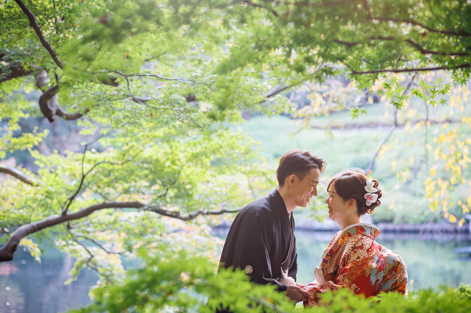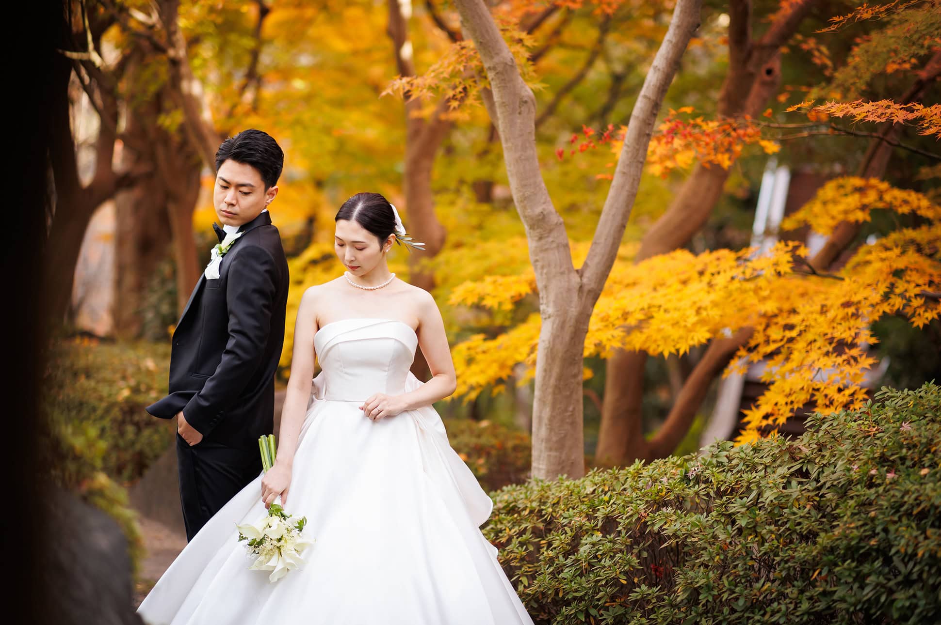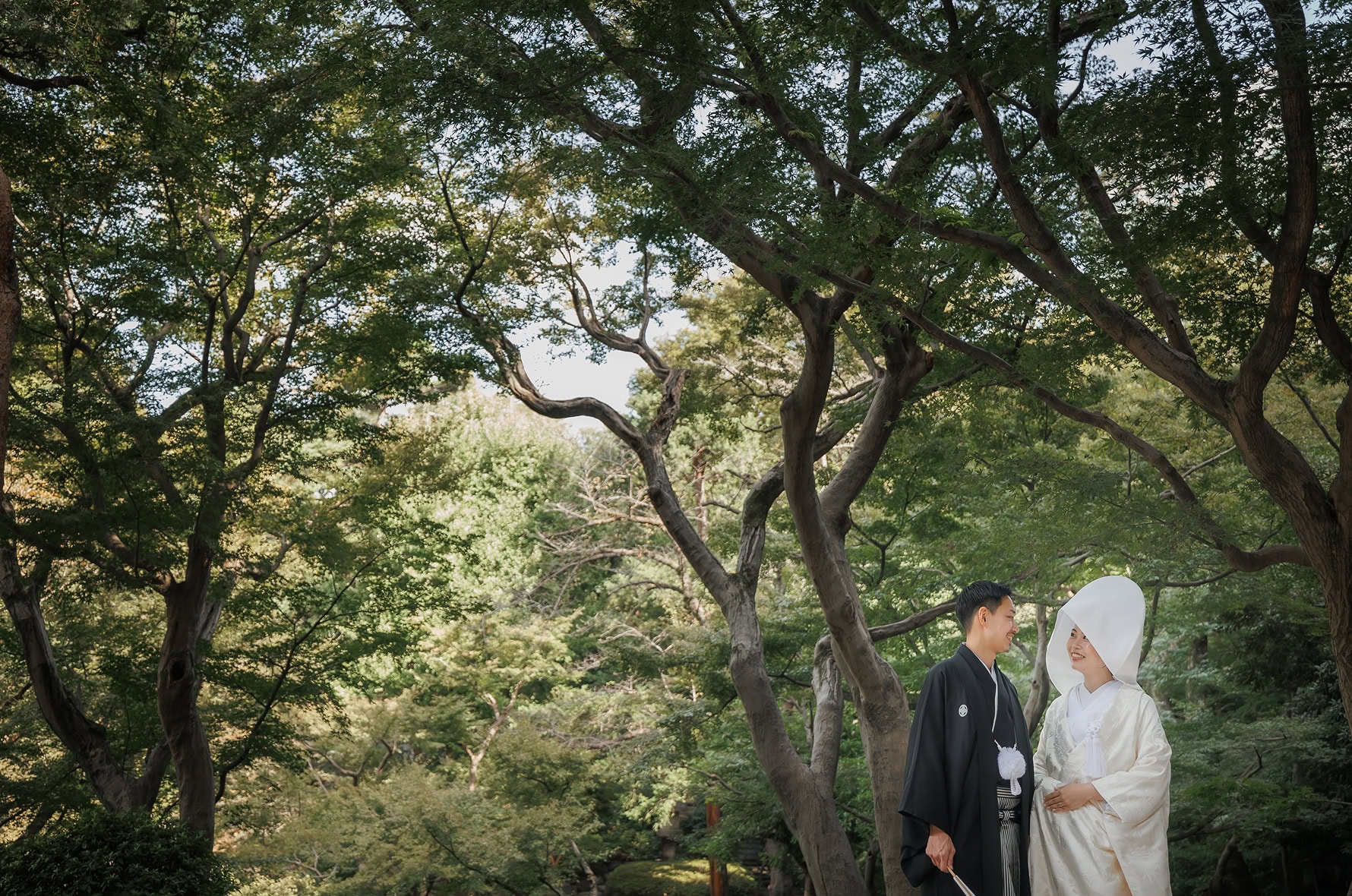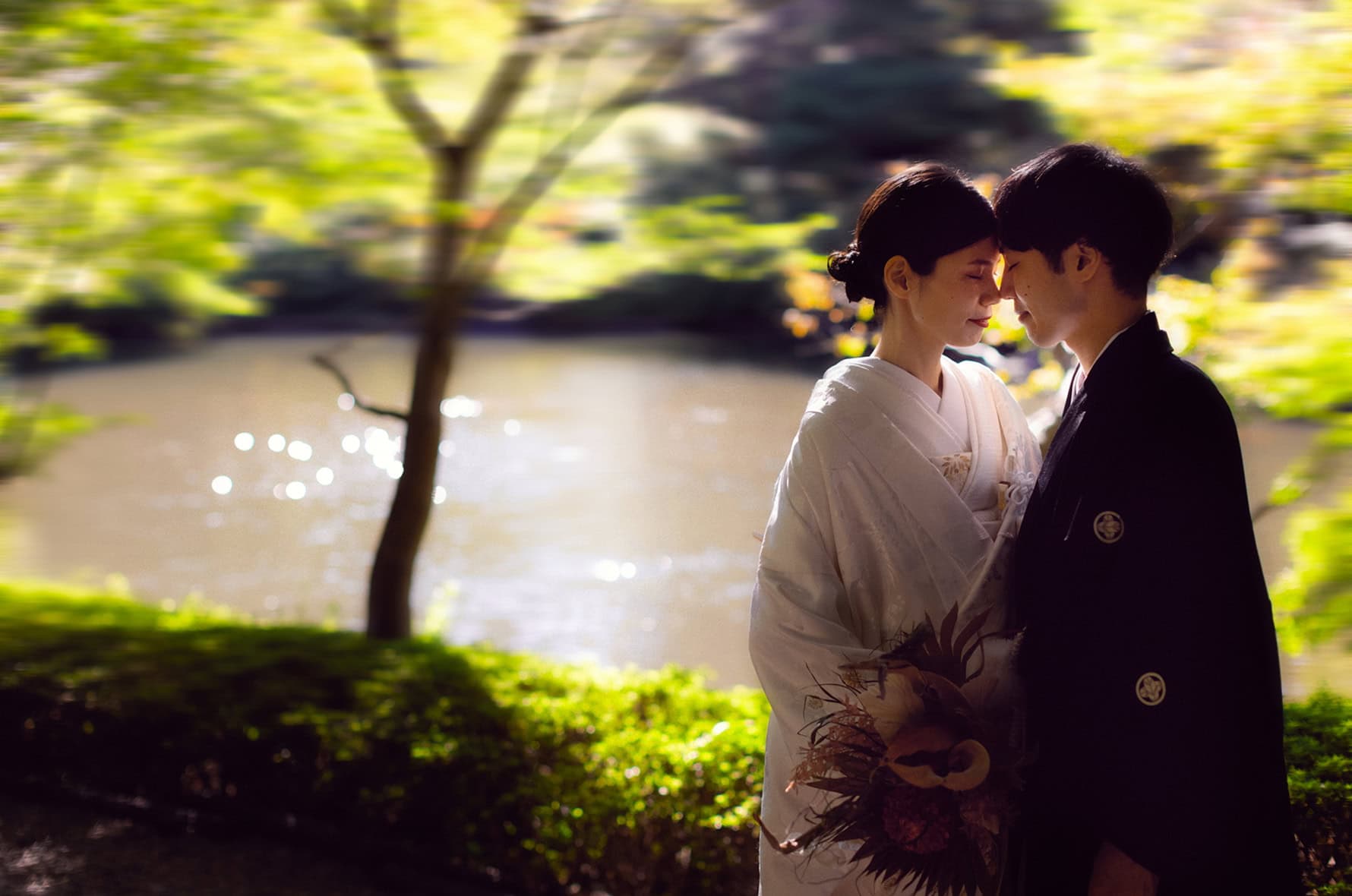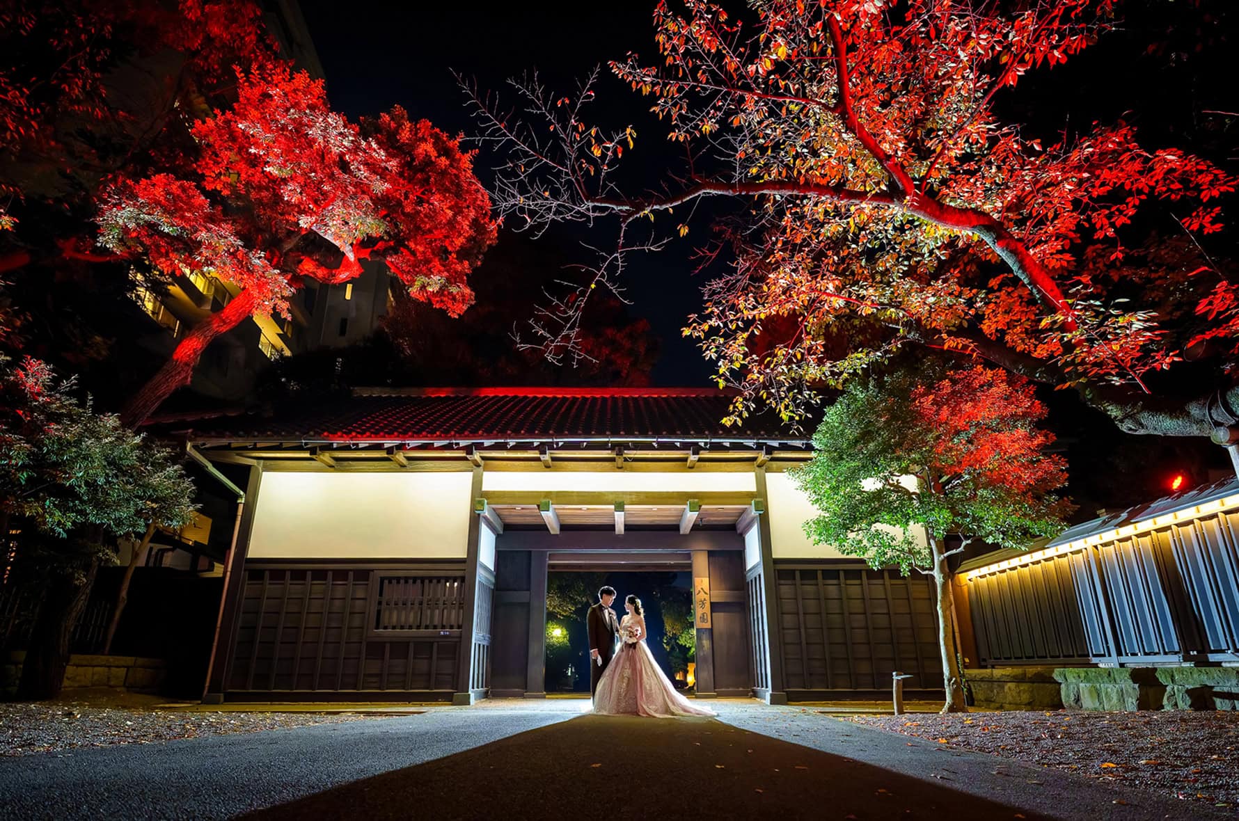 舞台は、約一万坪の敷地内に広がる広大な日本庭園。約400年の歴史を持つ庭園は、四季折々の美しい表情を見せます。庭園内の様々なスポットだけでなく、チャペルや神殿など園内には数多くのロケーションが。衣裳やおふたりのイメージに合わせて、バリエーション豊かな写真を残していただくことができます。