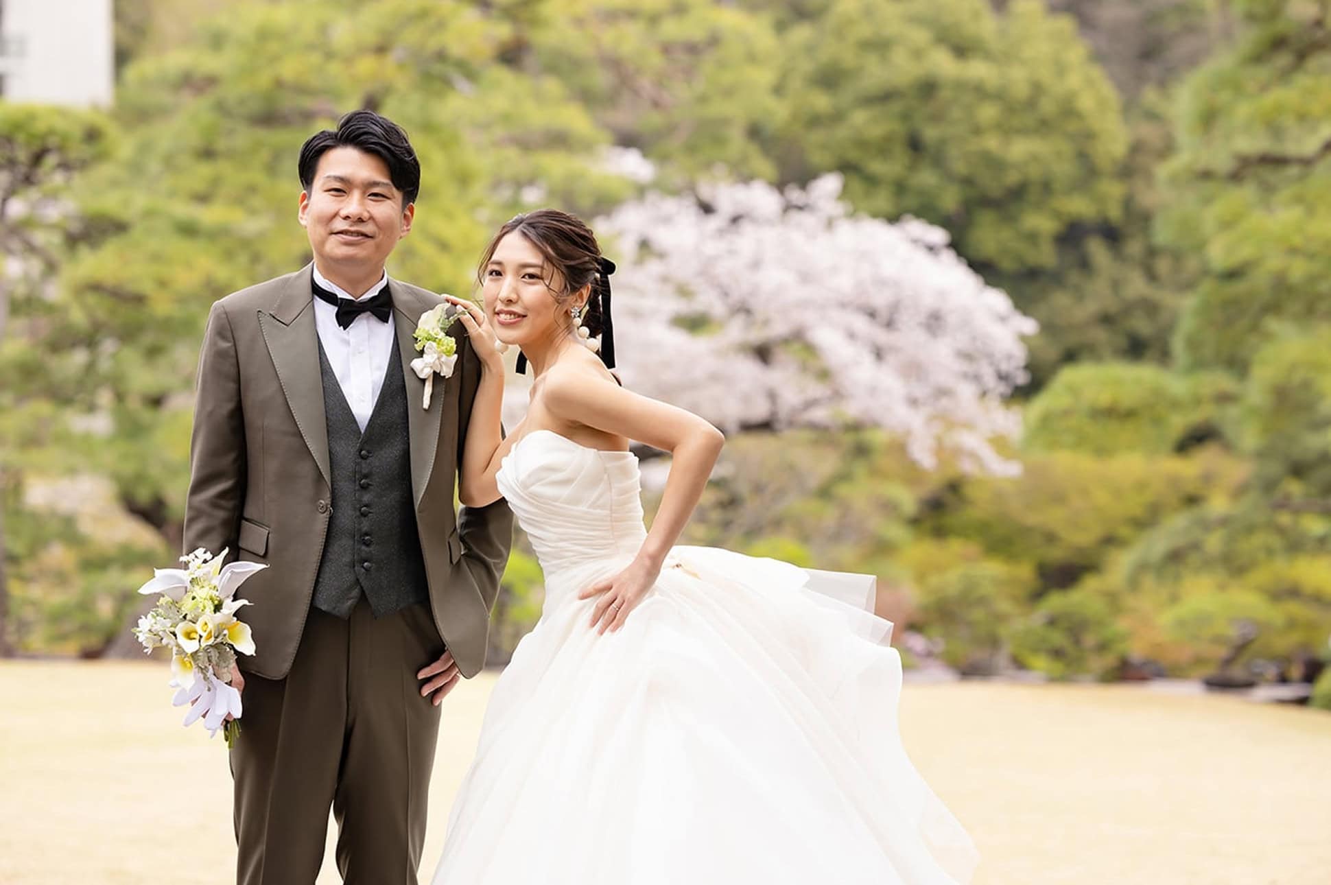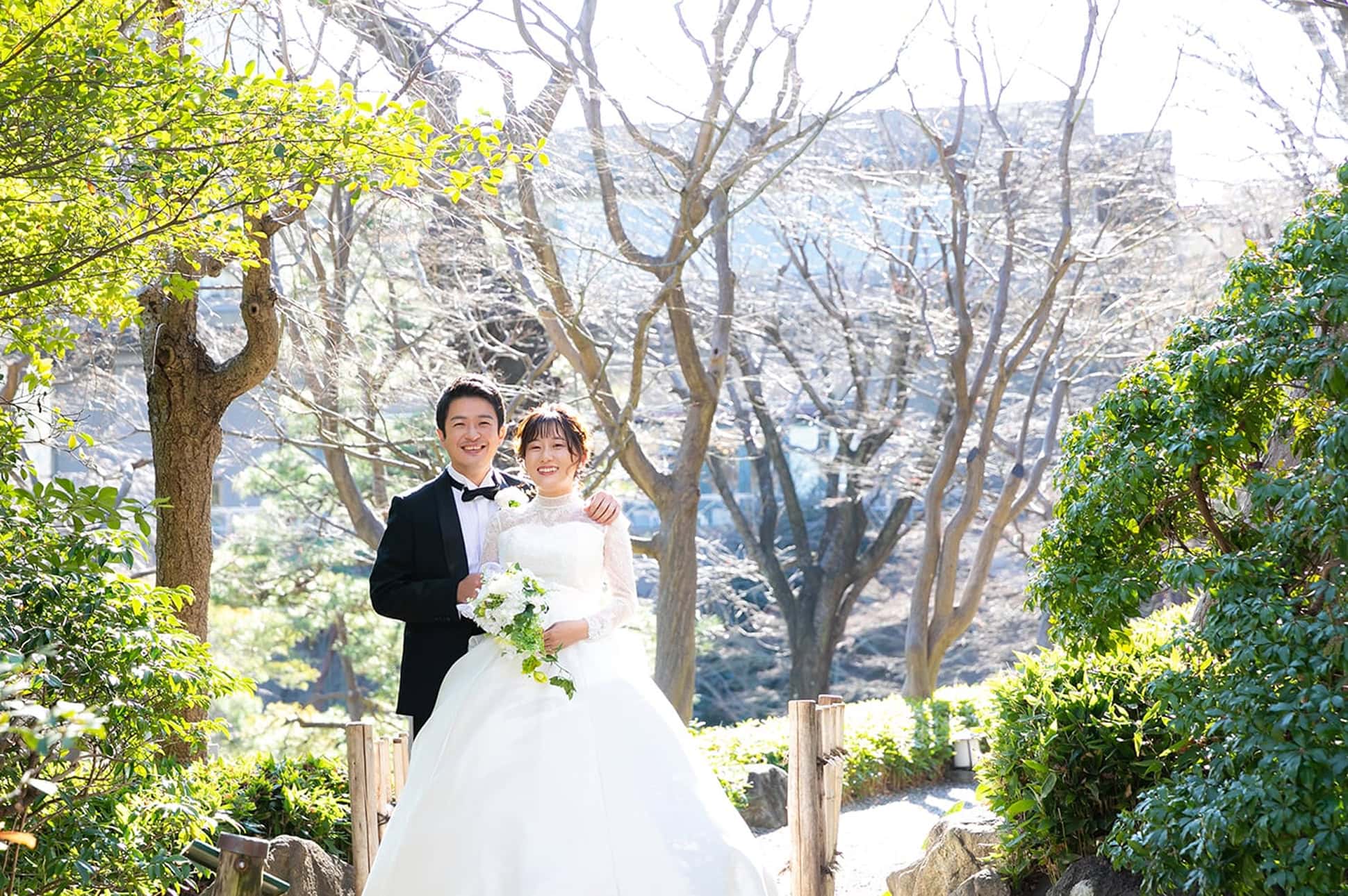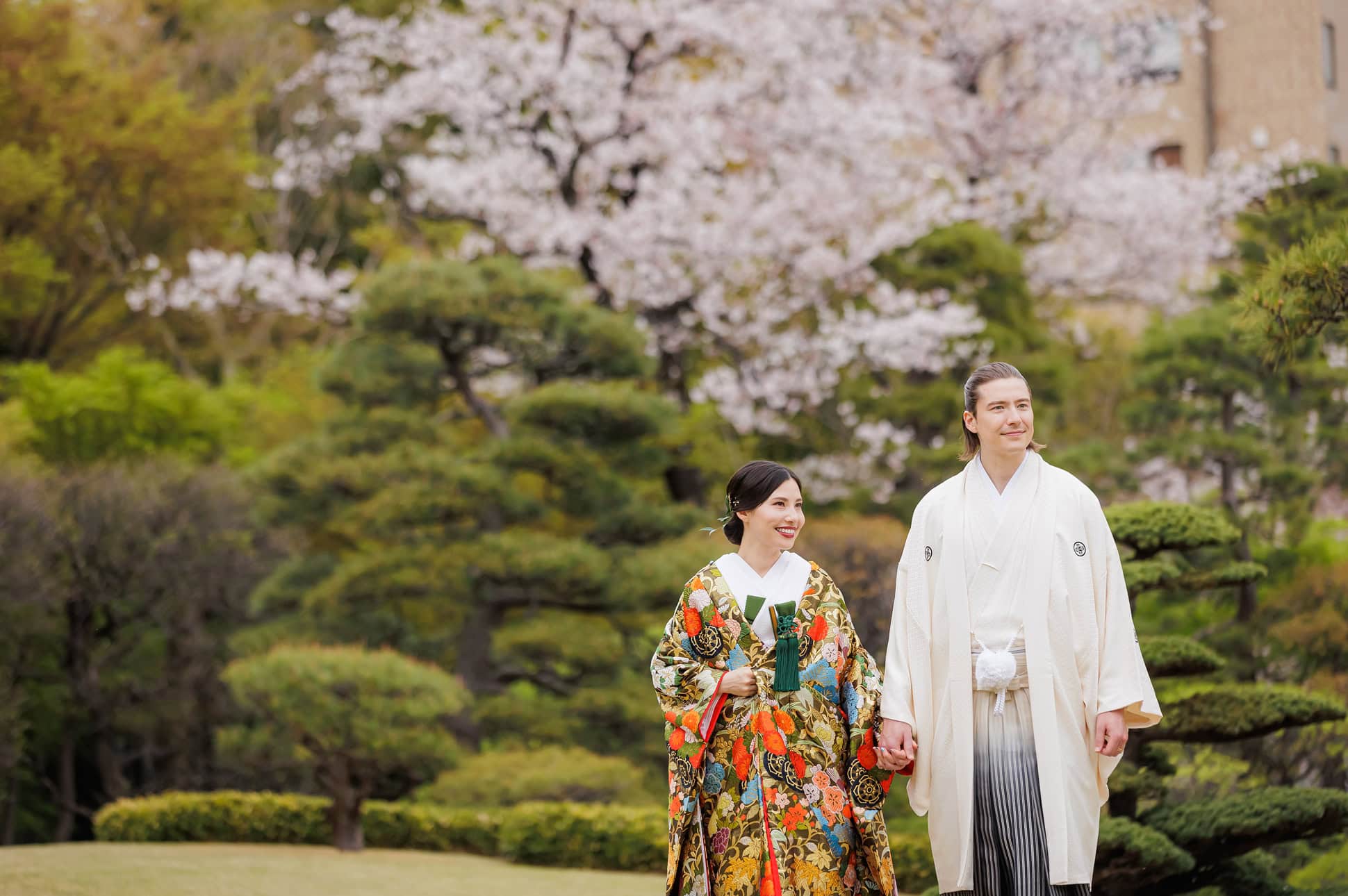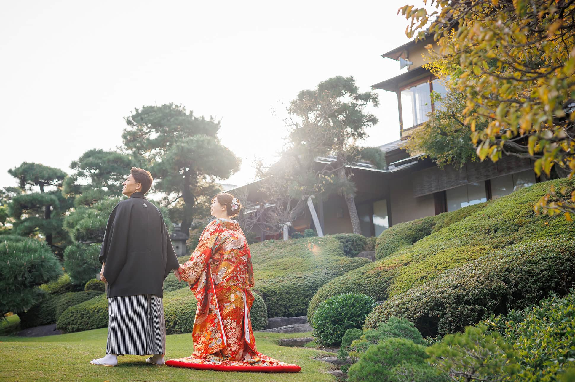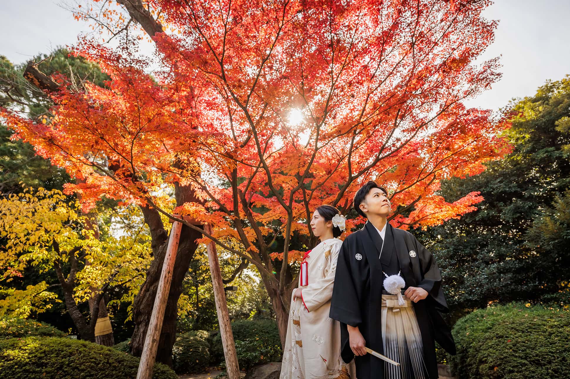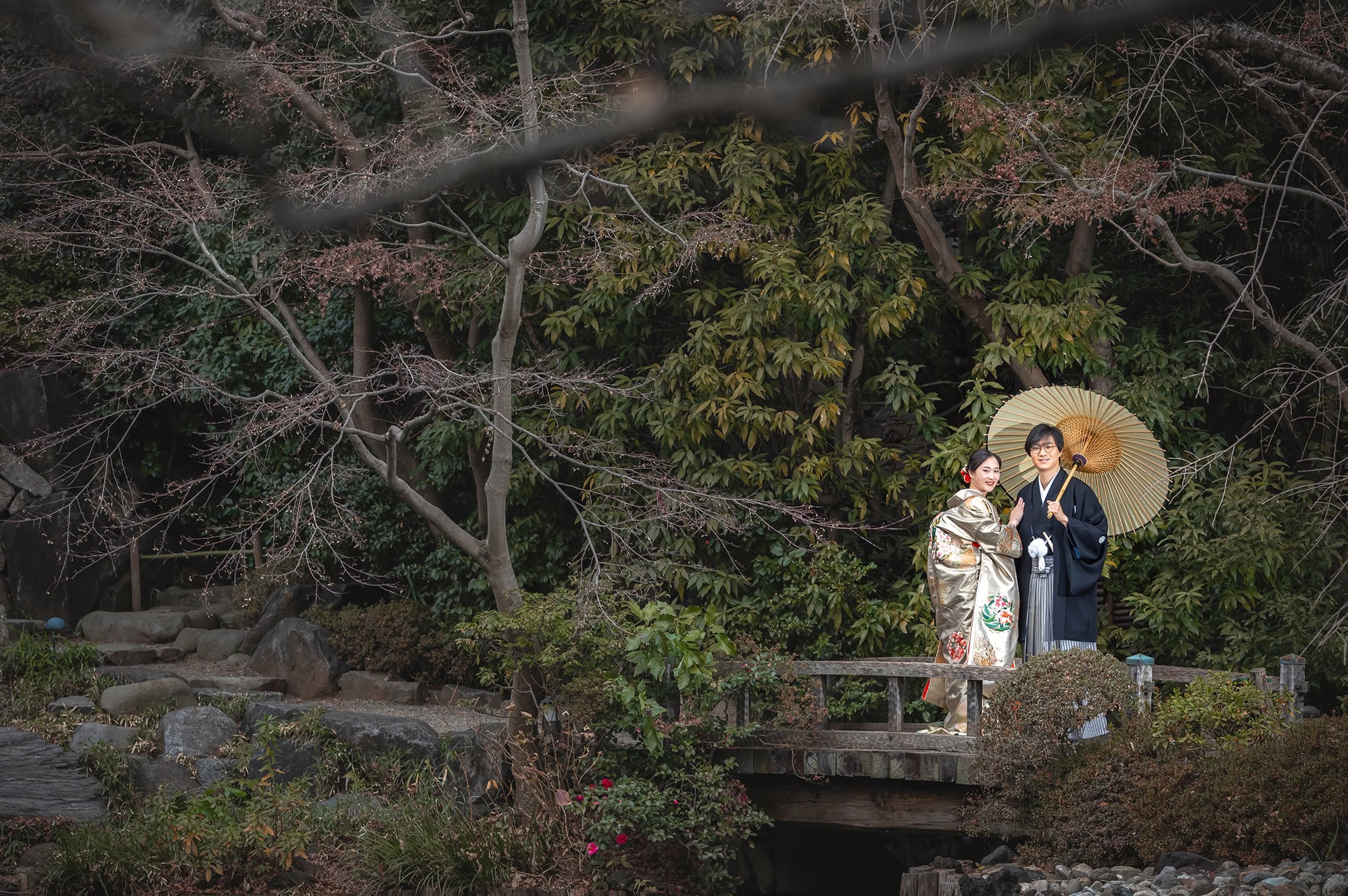 舞台は、約一万坪の敷地内に広がる広大な日本庭園。約400年の歴史を持つ庭園は、四季折々の美しい表情を見せます。庭園内の様々なスポットだけでなく、チャペルや神殿など園内には数多くのロケーションが。衣裳やおふたりのイメージに合わせて、バリエーション豊かな写真を残していただくことができます。