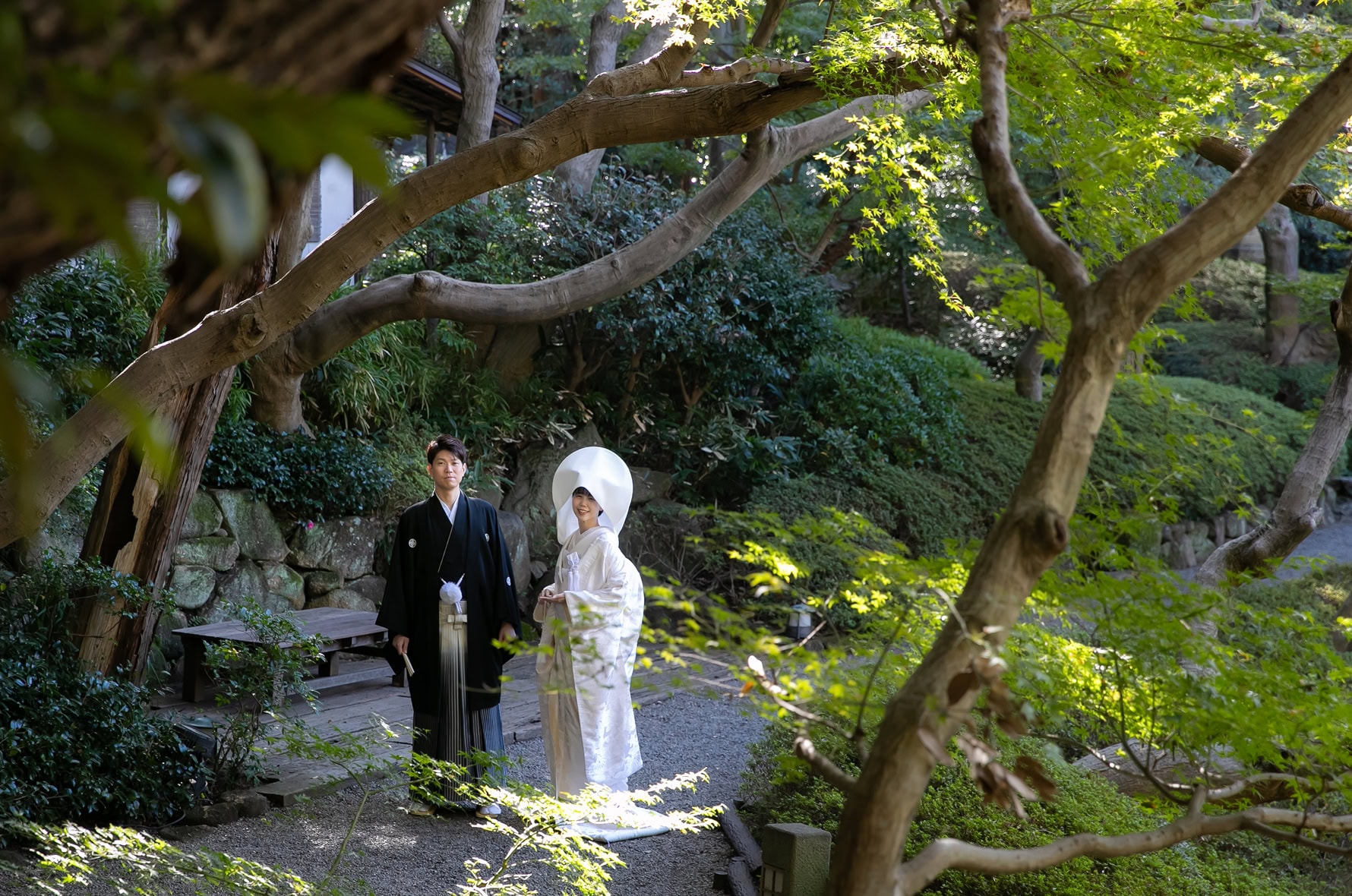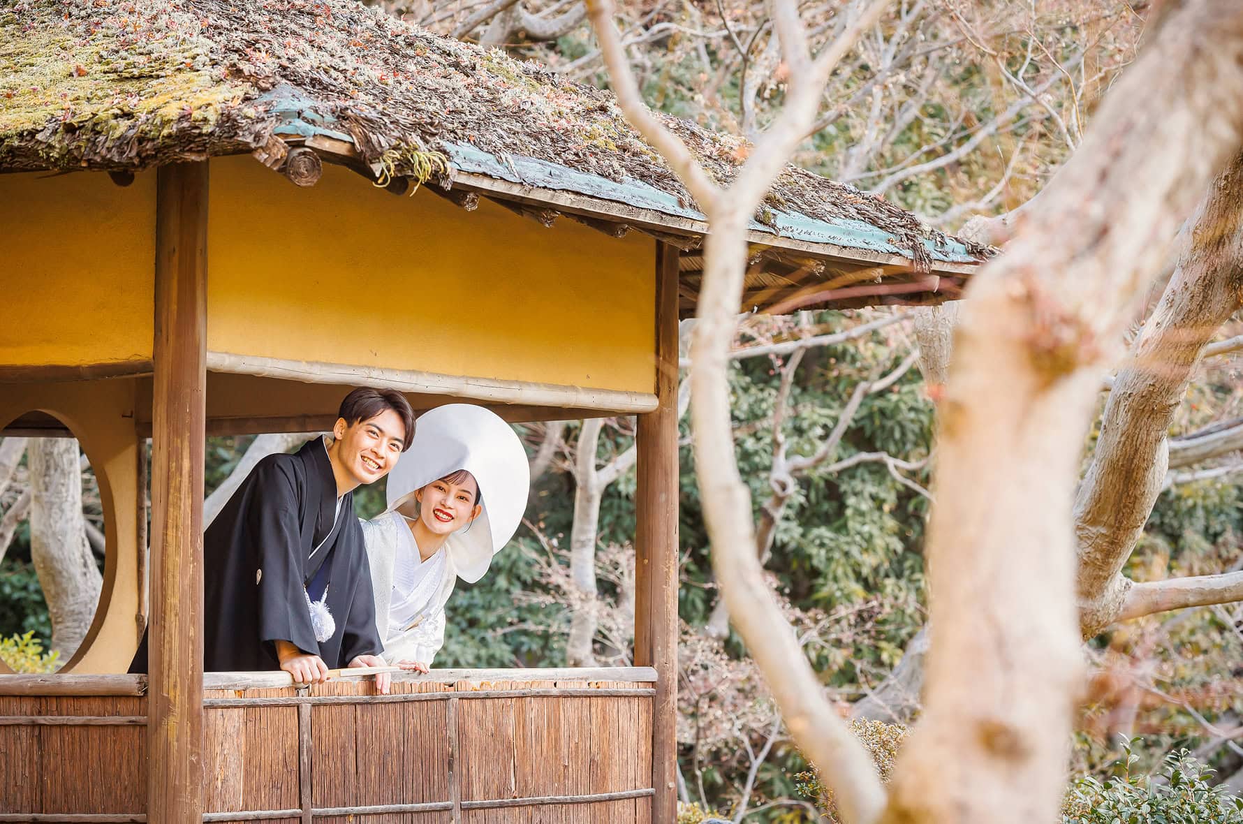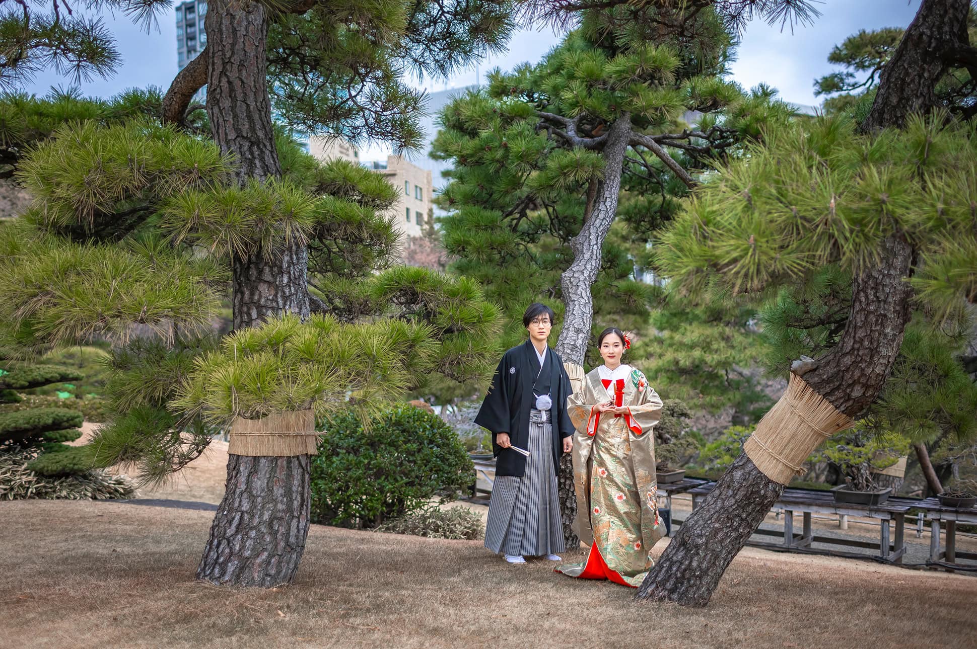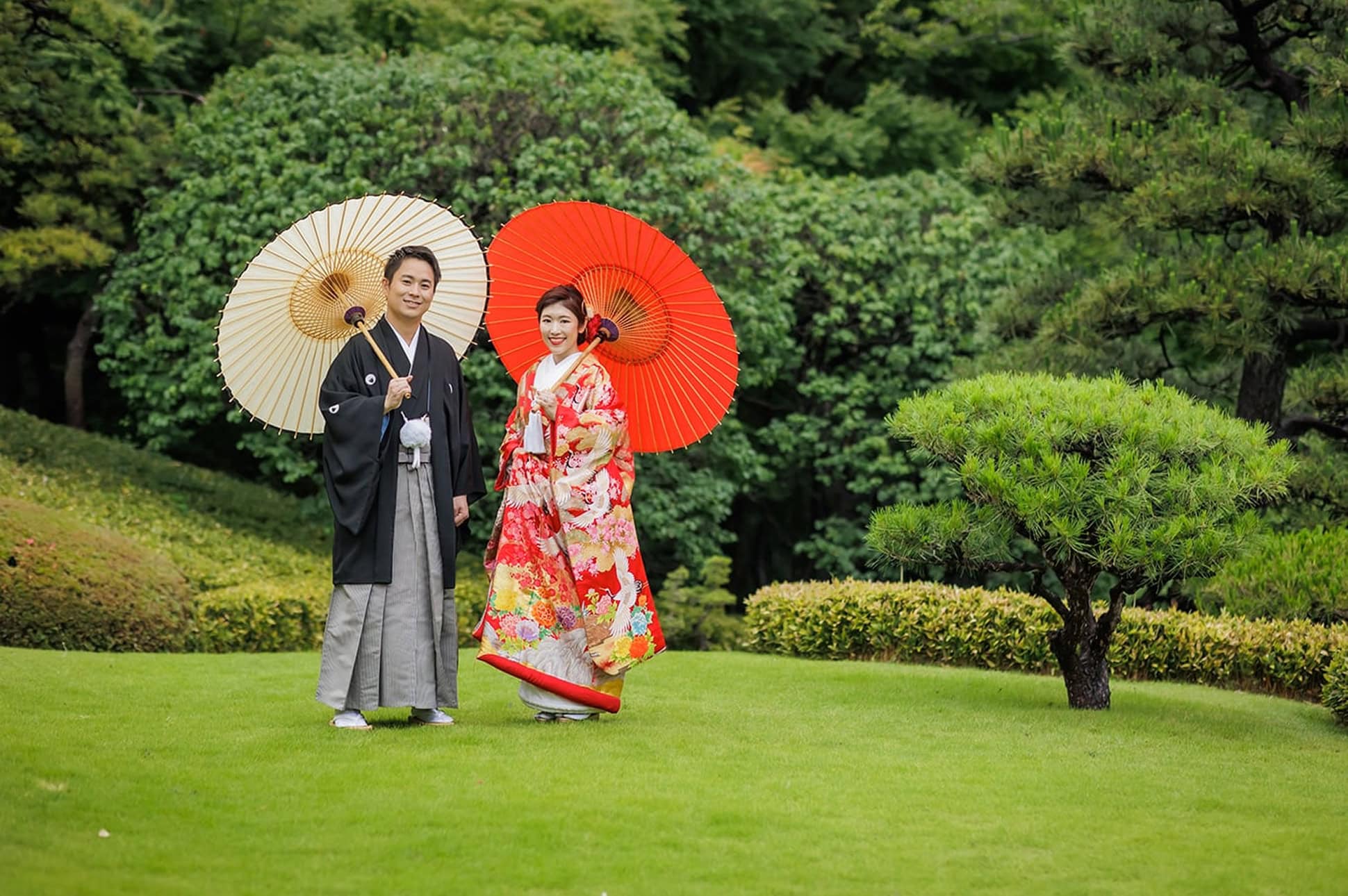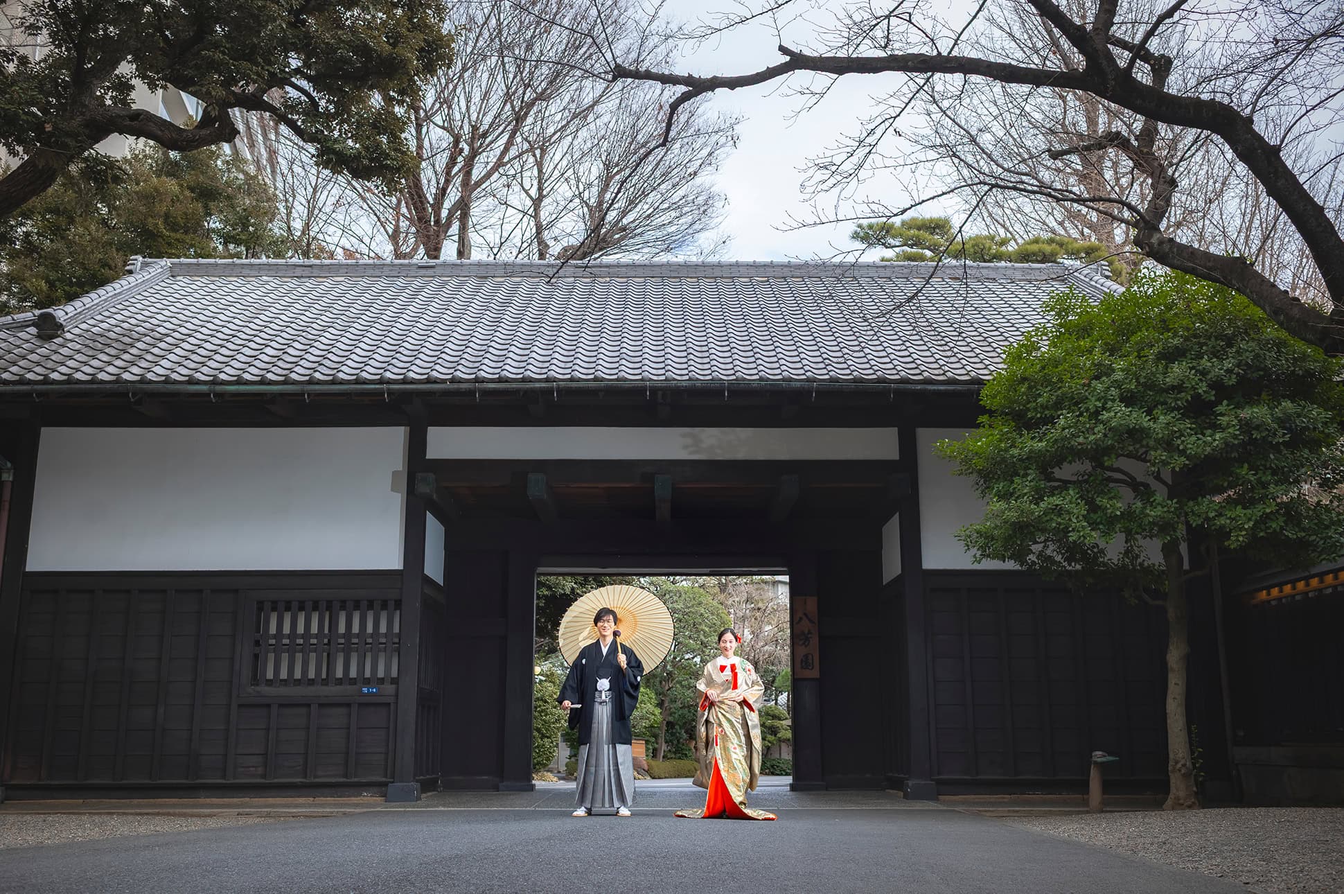 舞台は、約一万坪の敷地内に広がる広大な日本庭園。約400年の歴史を持つ庭園は、四季折々の美しい表情を見せます。庭園内の様々なスポットだけでなく、チャペルや神殿など園内には数多くのロケーションが。衣裳やおふたりのイメージに合わせて、バリエーション豊かな写真を残していただくことができます。