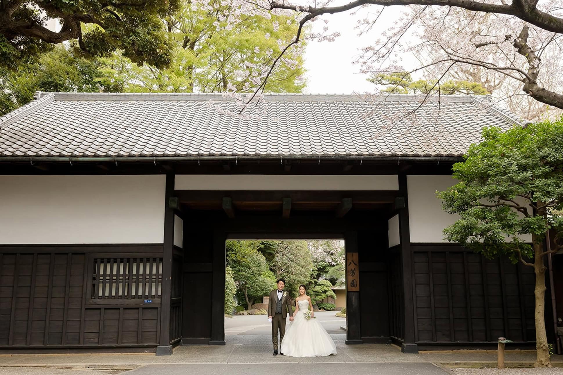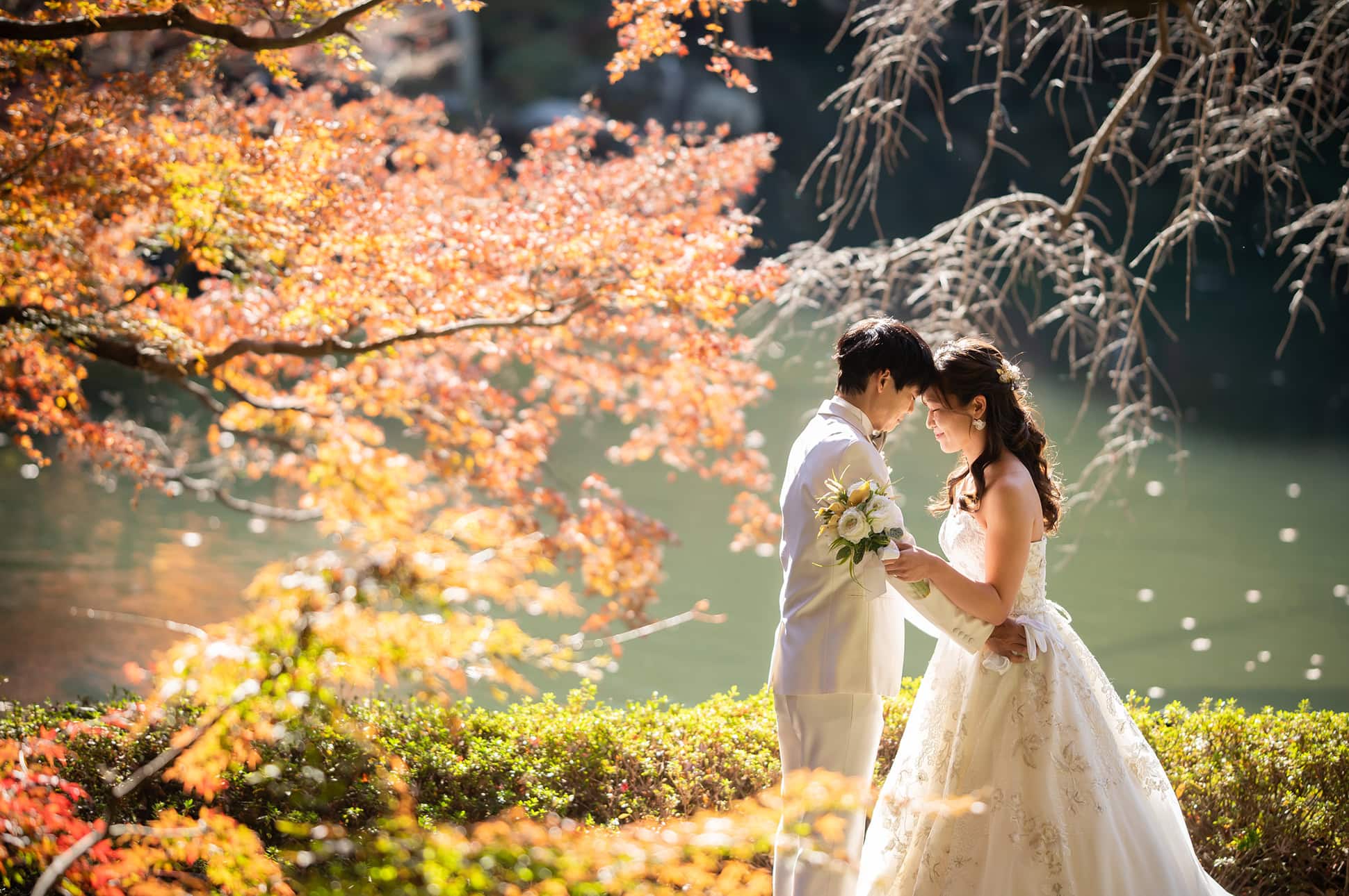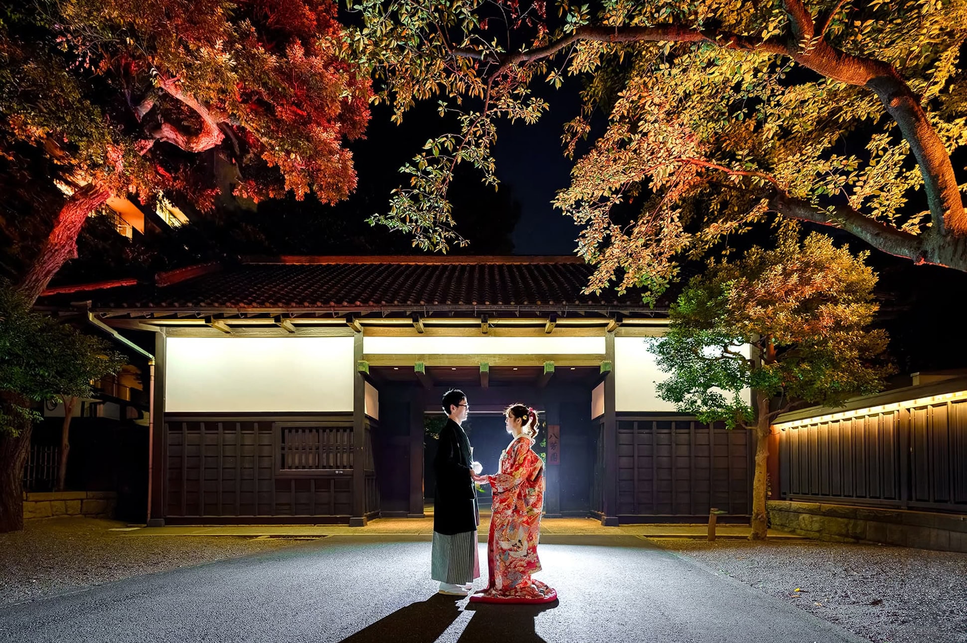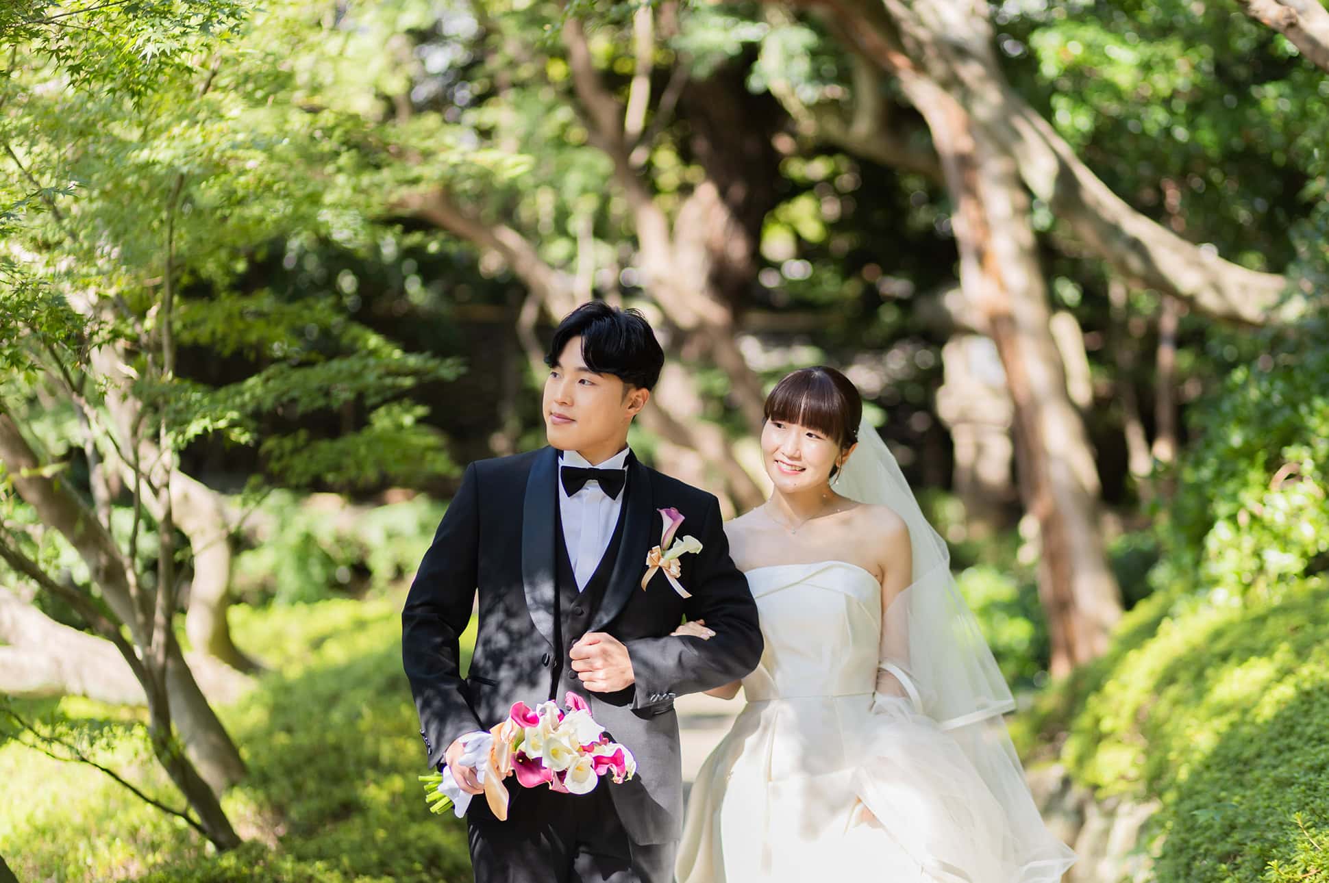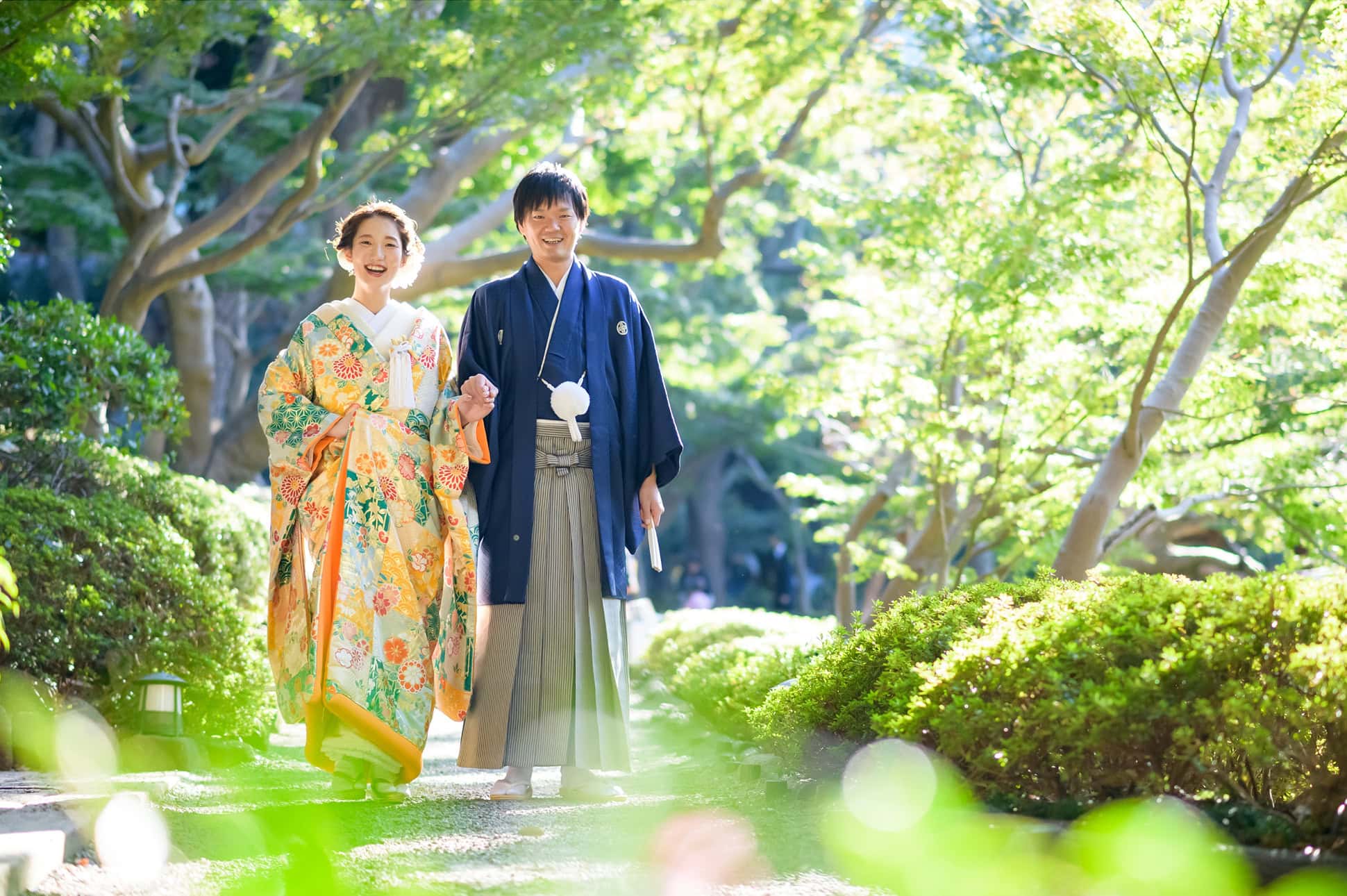舞台は、約一万坪の敷地内に広がる広大な日本庭園。約400年の歴史を持つ庭園は、四季折々の美しい表情を見せます。庭園内の様々なスポットだけでなく、チャペルや神殿など園内には数多くのロケーションが。衣裳やおふたりのイメージに合わせて、バリエーション豊かな写真を残していただくことができます。