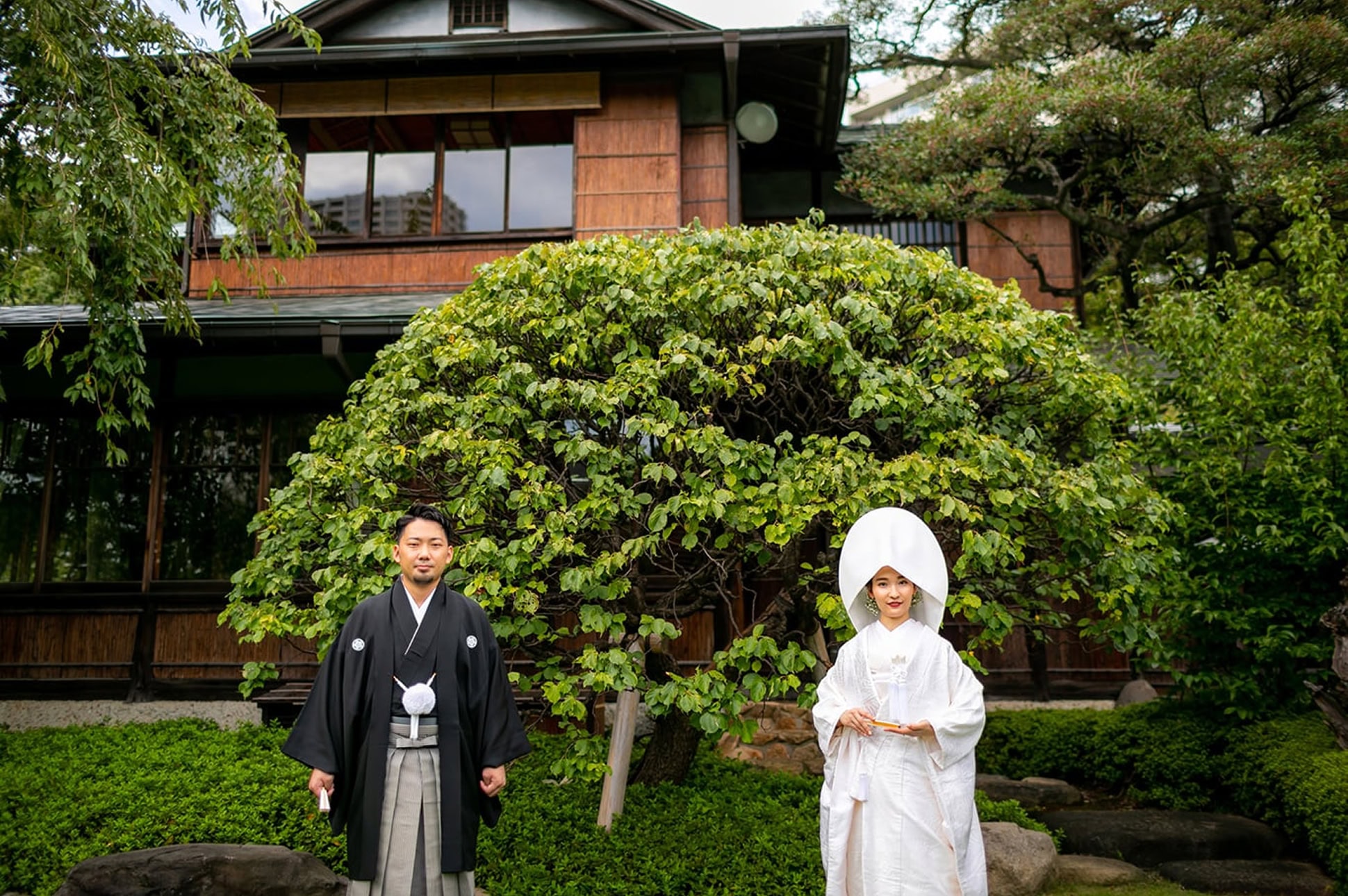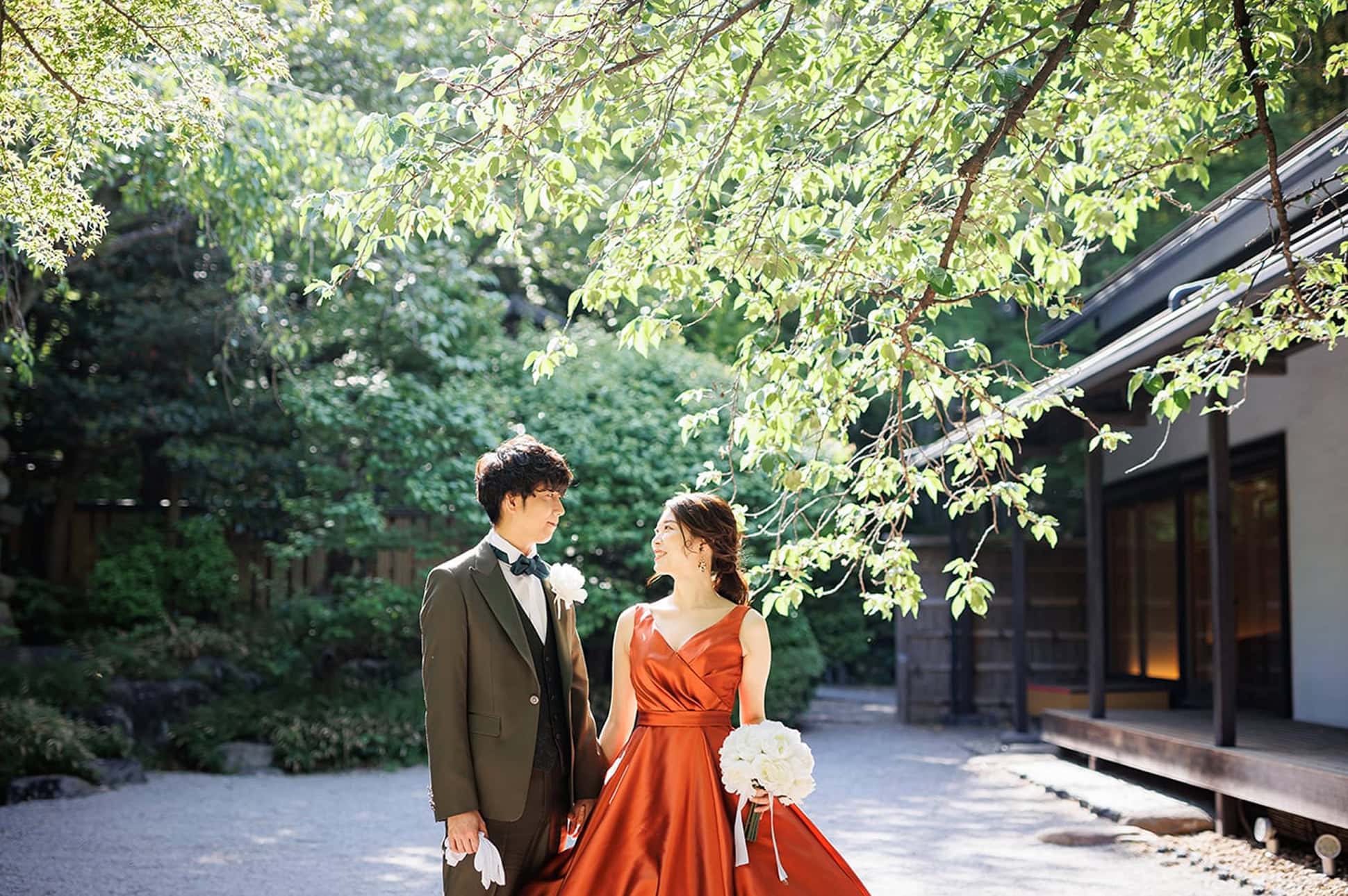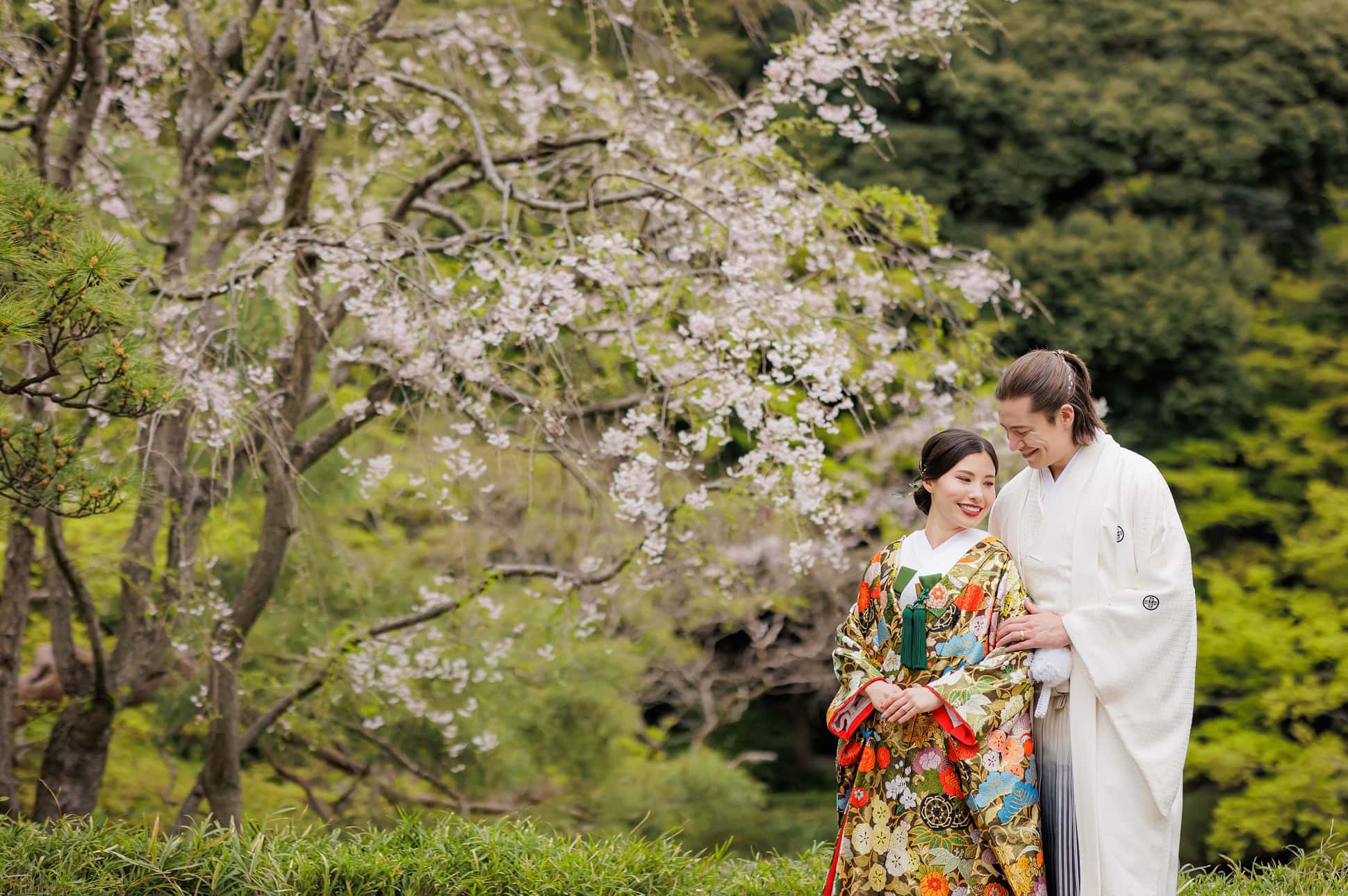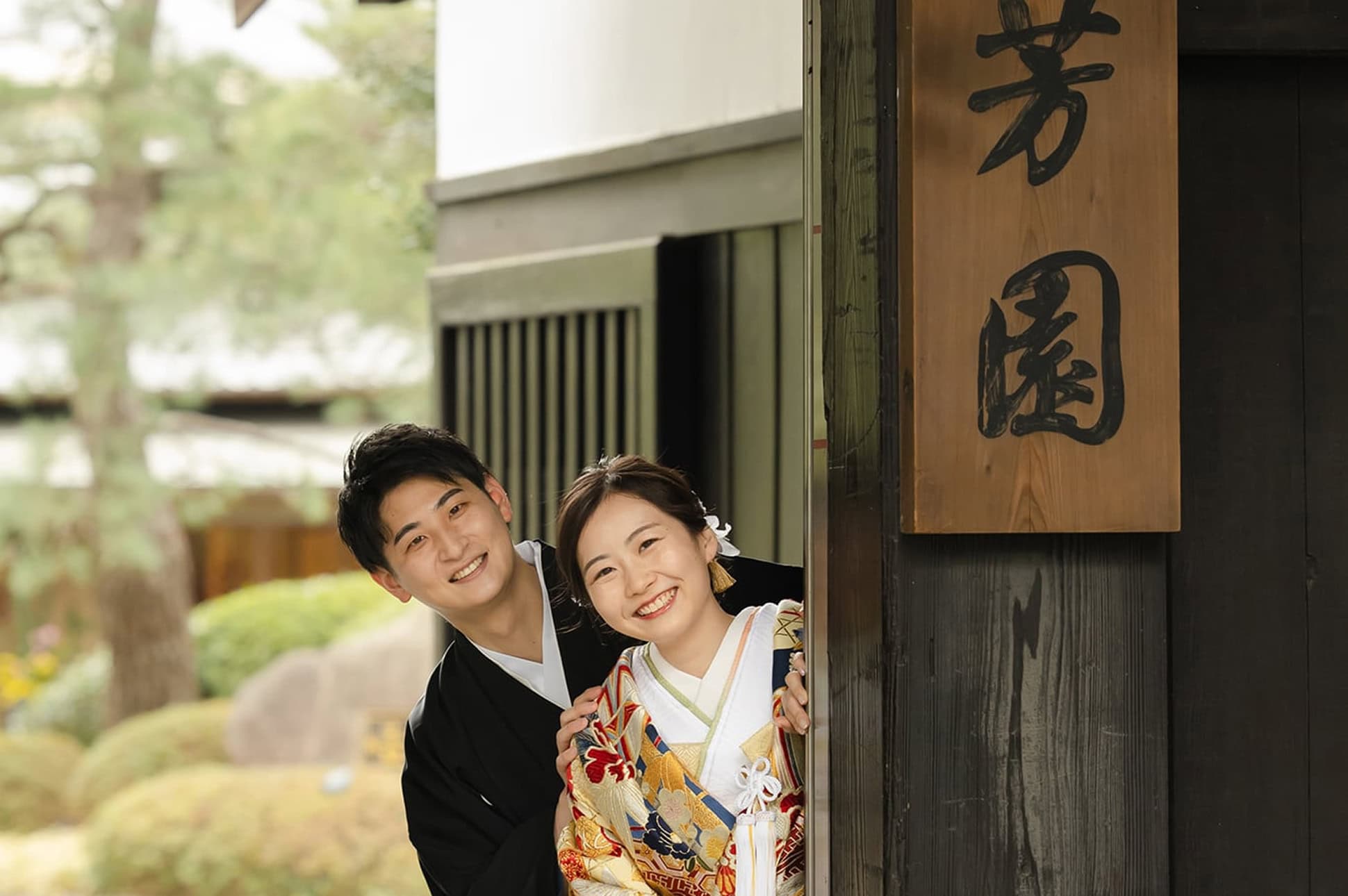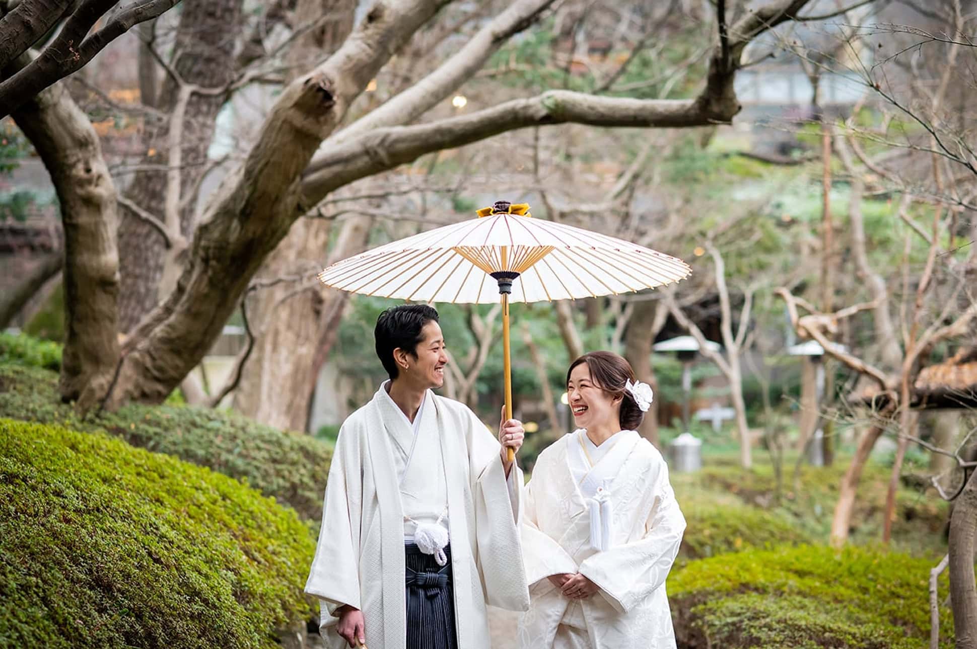 舞台は、約一万坪の敷地内に広がる広大な日本庭園。約400年の歴史を持つ庭園は、四季折々の美しい表情を見せます。庭園内の様々なスポットだけでなく、チャペルや神殿など園内には数多くのロケーションが。衣裳やおふたりのイメージに合わせて、バリエーション豊かな写真を残していただくことができます。
