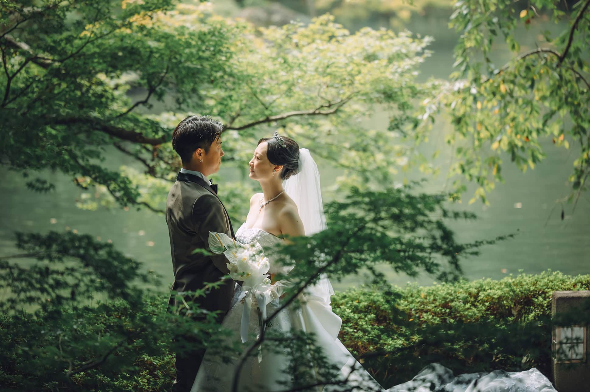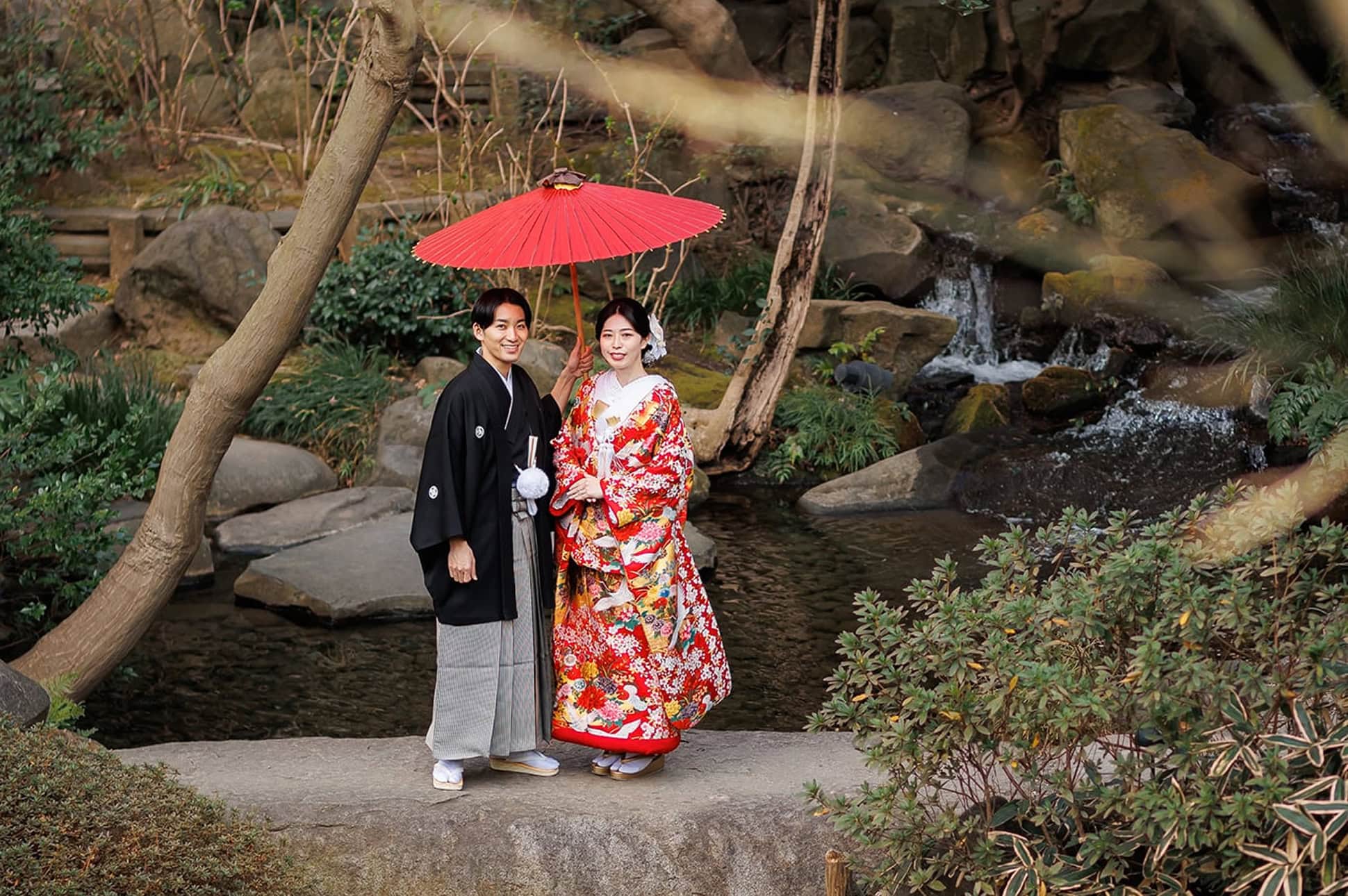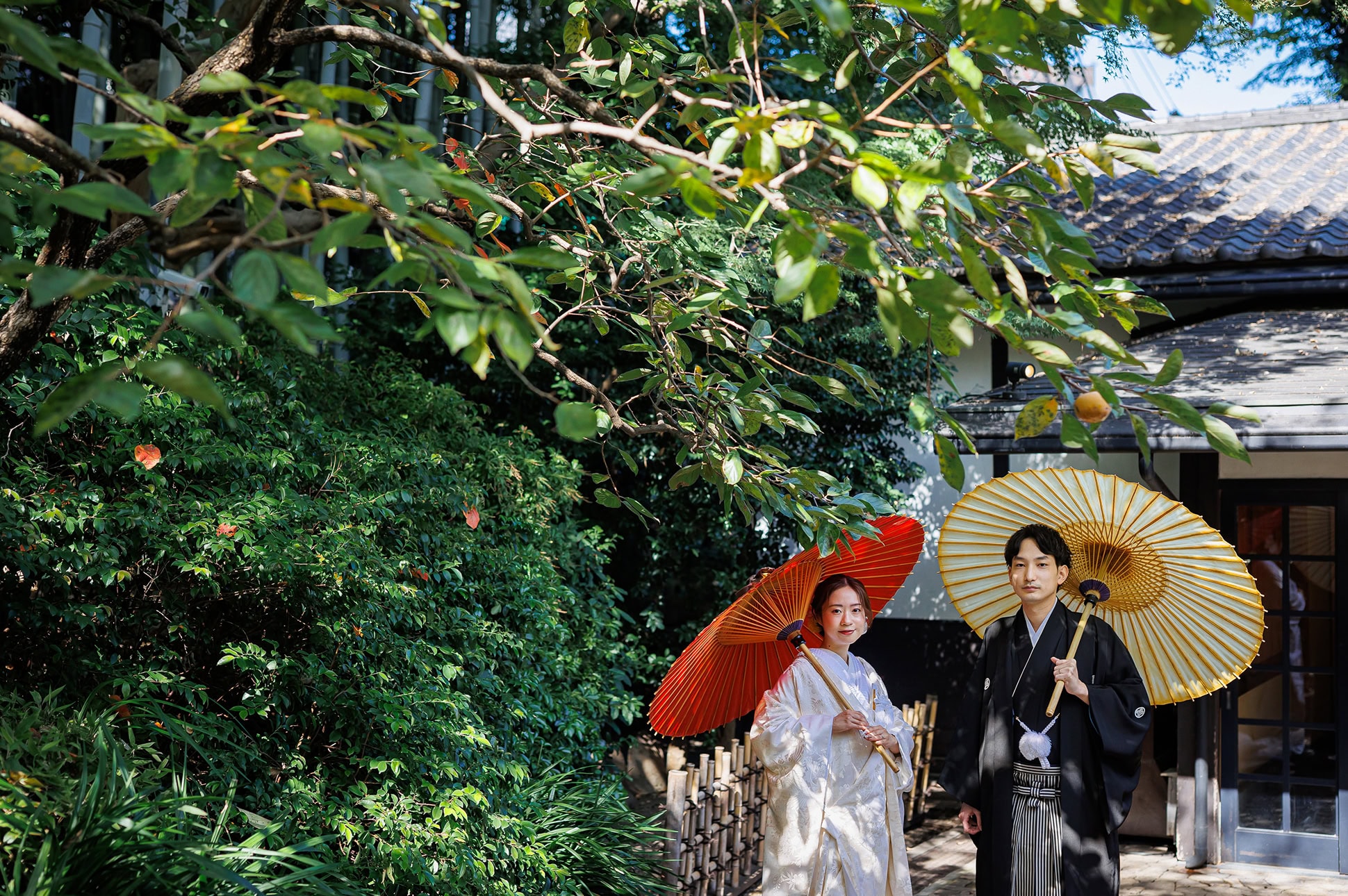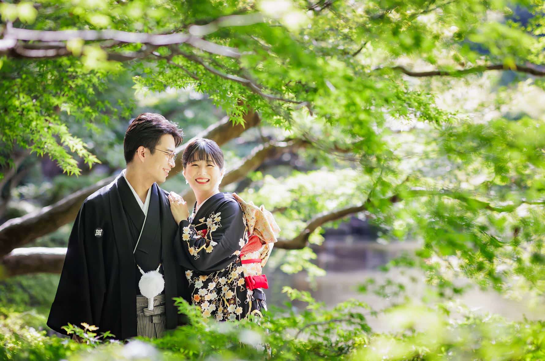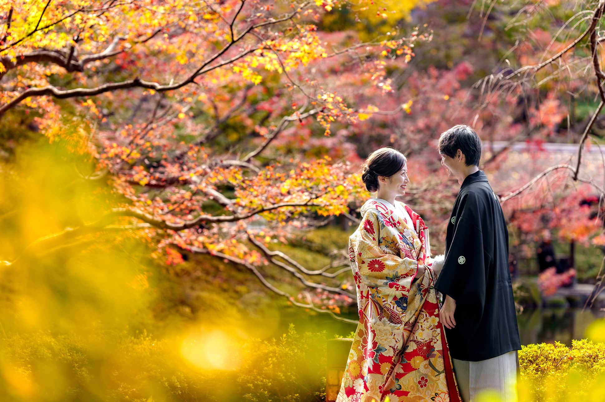 舞台は、約一万坪の敷地内に広がる広大な日本庭園。約400年の歴史を持つ庭園は、四季折々の美しい表情を見せます。庭園内の様々なスポットだけでなく、チャペルや神殿など園内には数多くのロケーションが。衣裳やおふたりのイメージに合わせて、バリエーション豊かな写真を残していただくことができます。