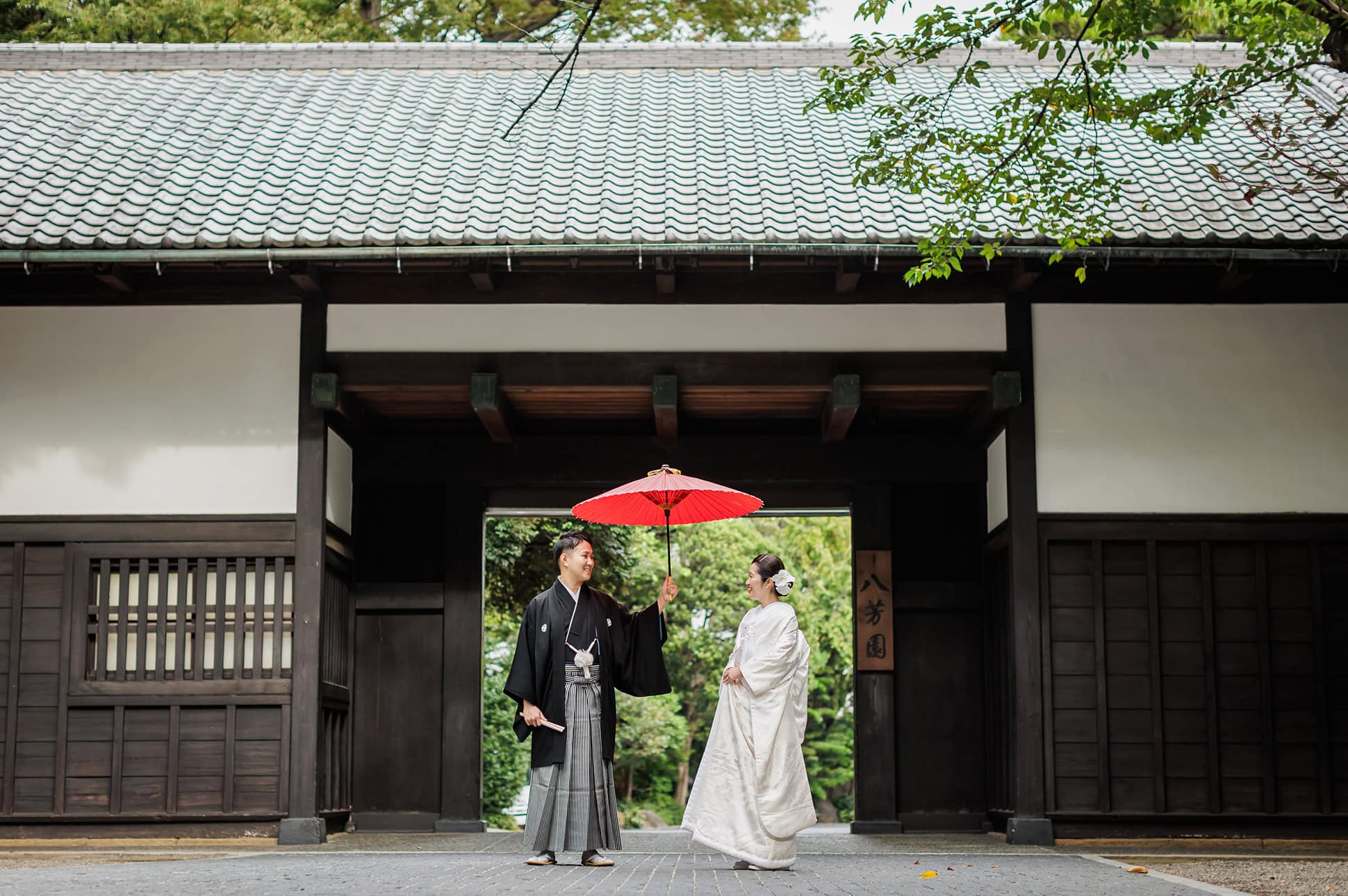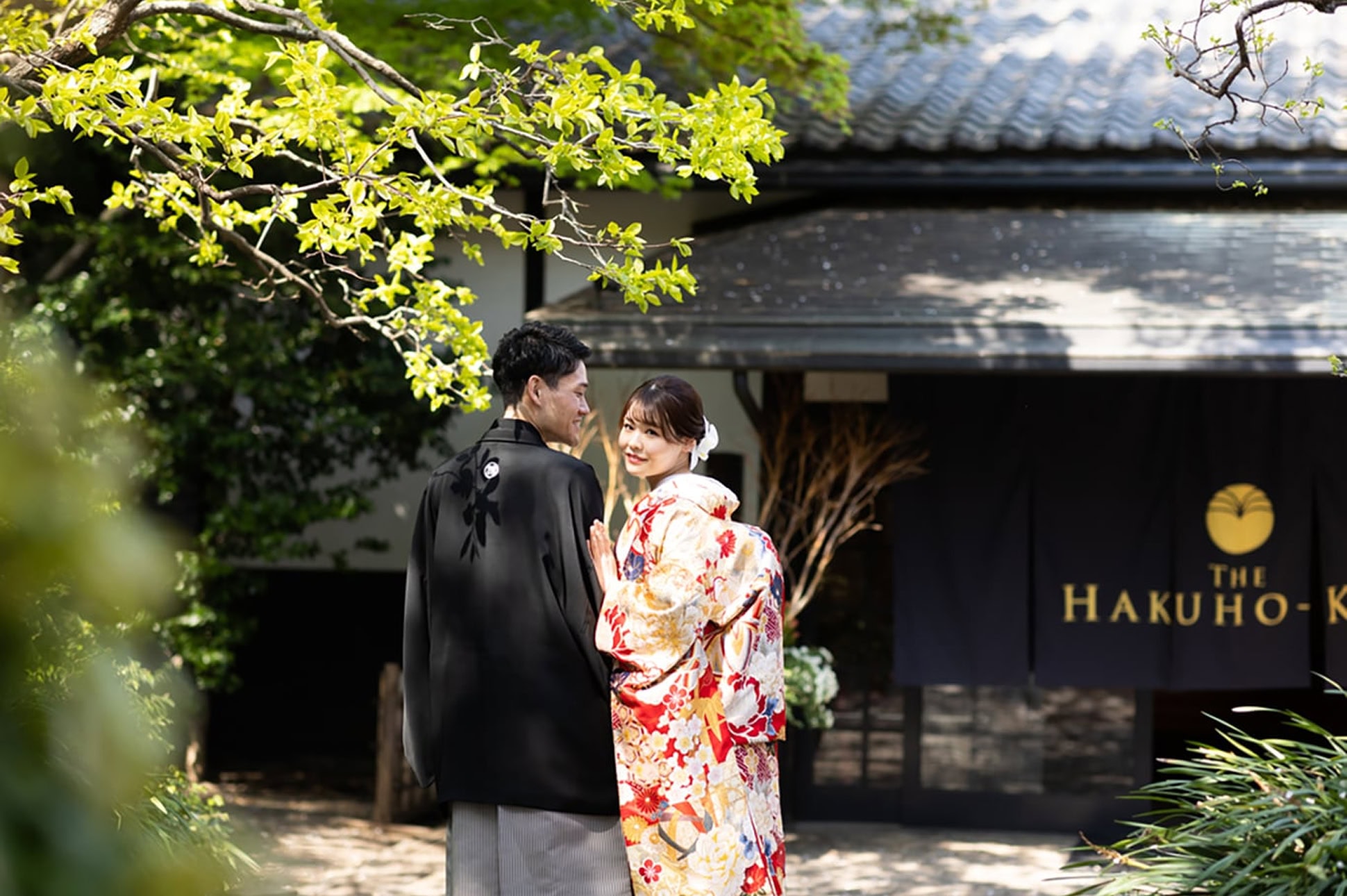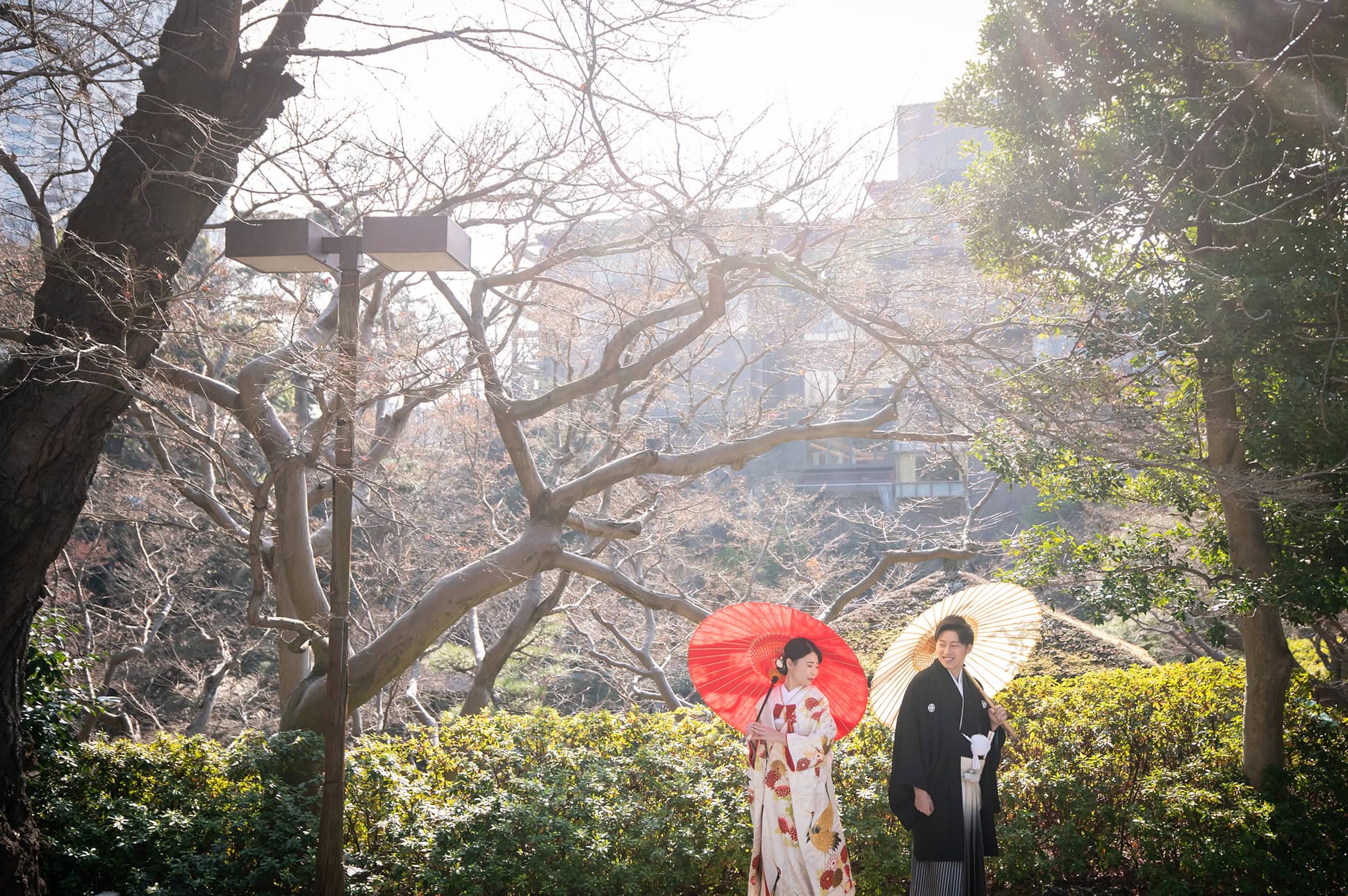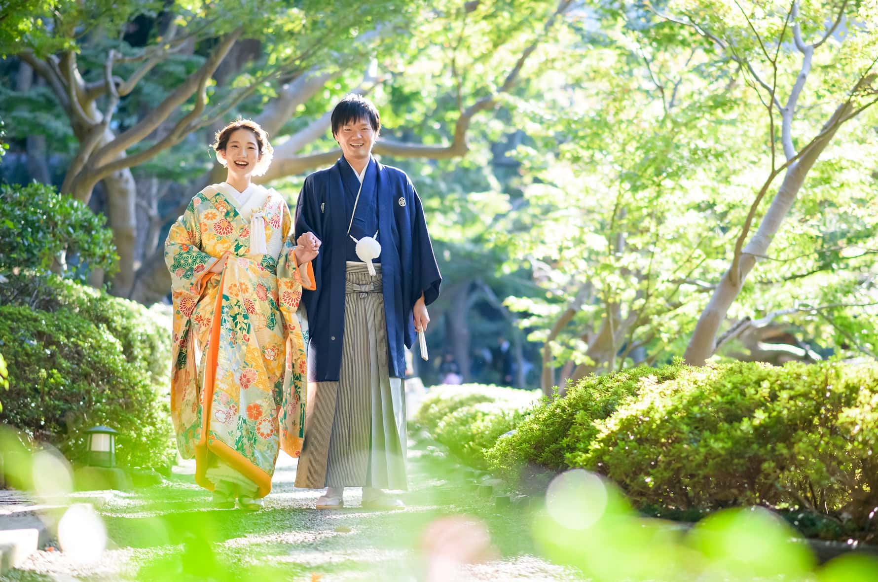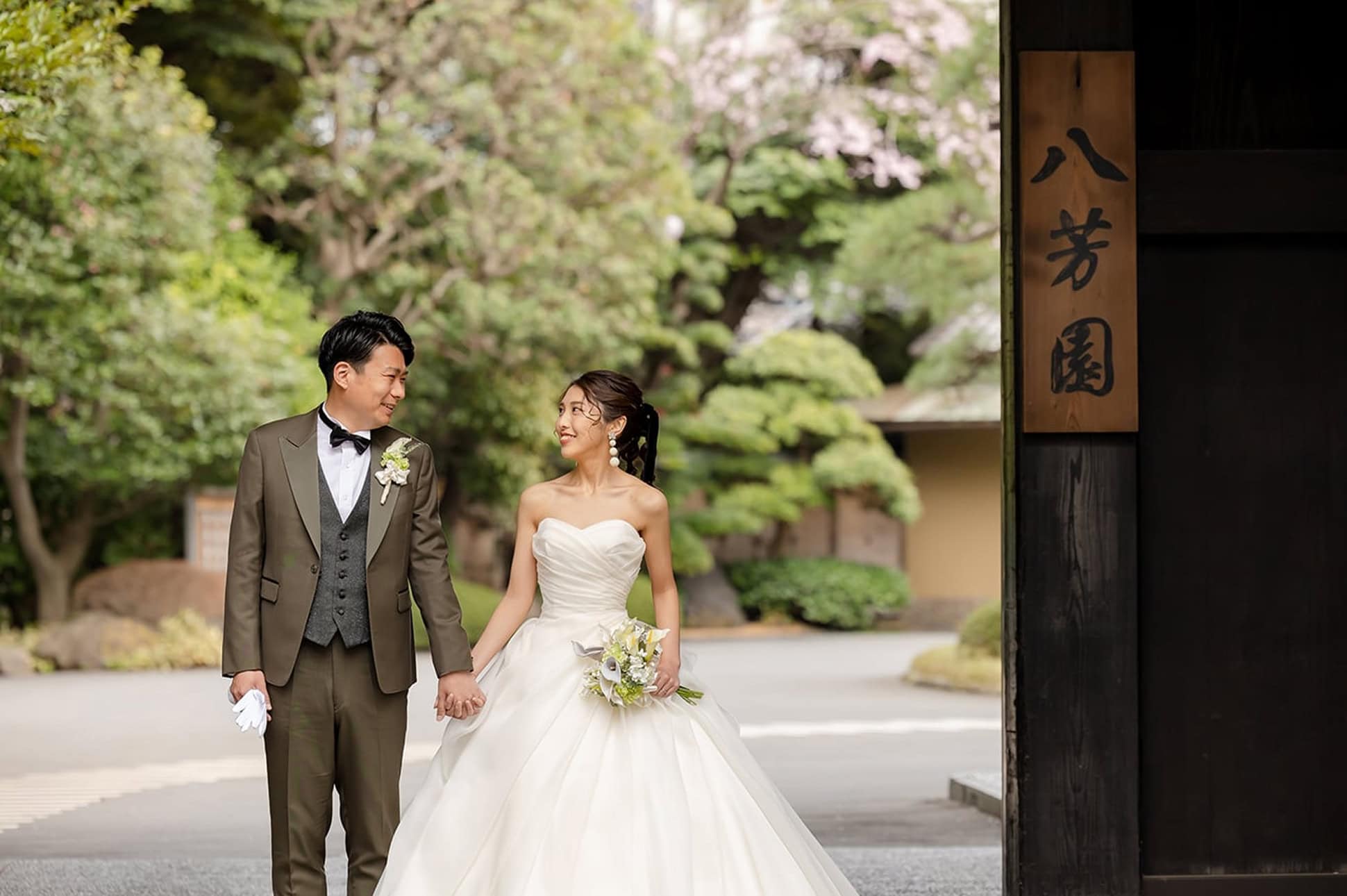 舞台は、約一万坪の敷地内に広がる広大な日本庭園。約400年の歴史を持つ庭園は、四季折々の美しい表情を見せます。庭園内の様々なスポットだけでなく、チャペルや神殿など園内には数多くのロケーションが。衣裳やおふたりのイメージに合わせて、バリエーション豊かな写真を残していただくことができます。