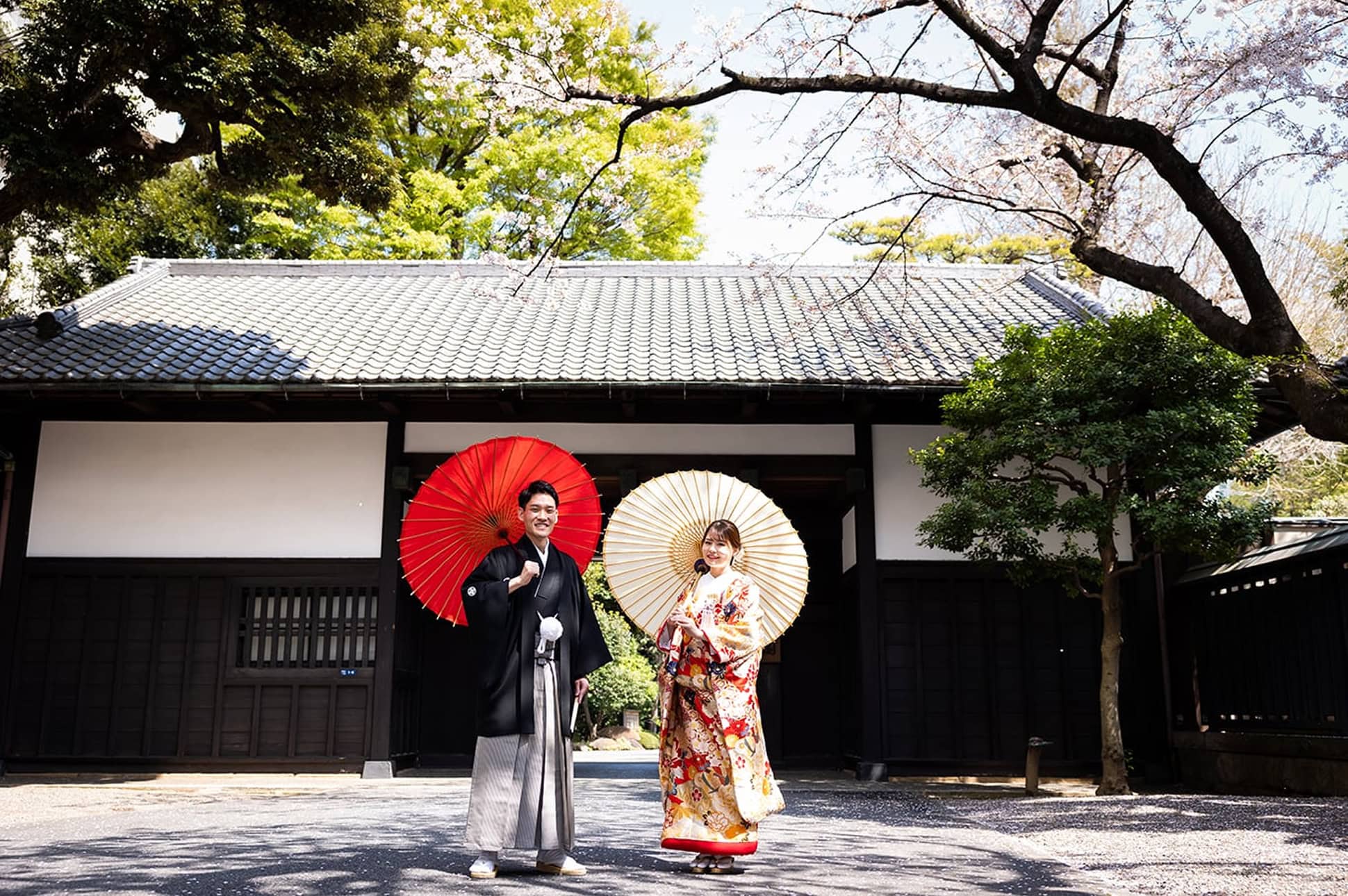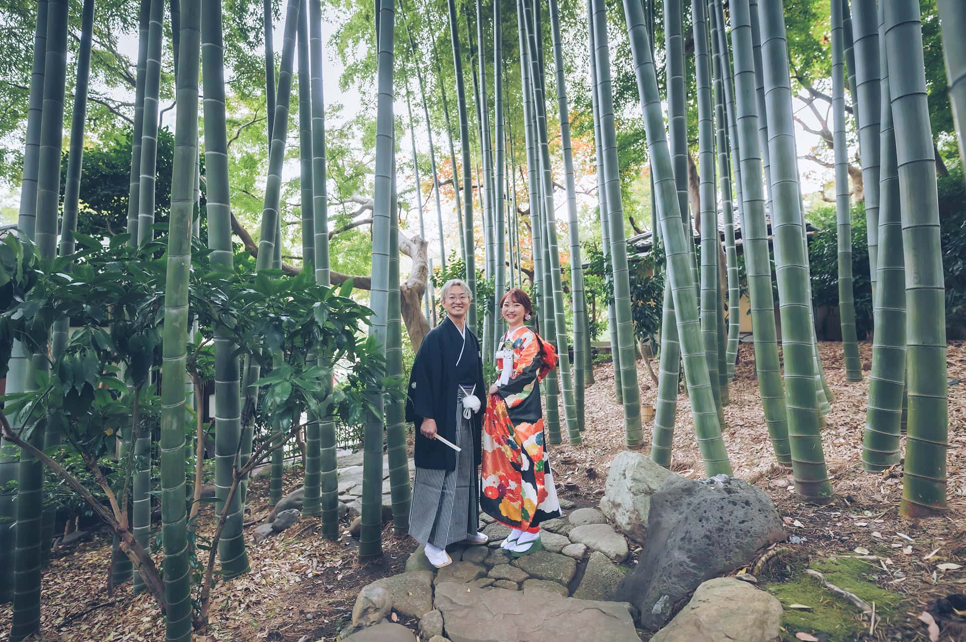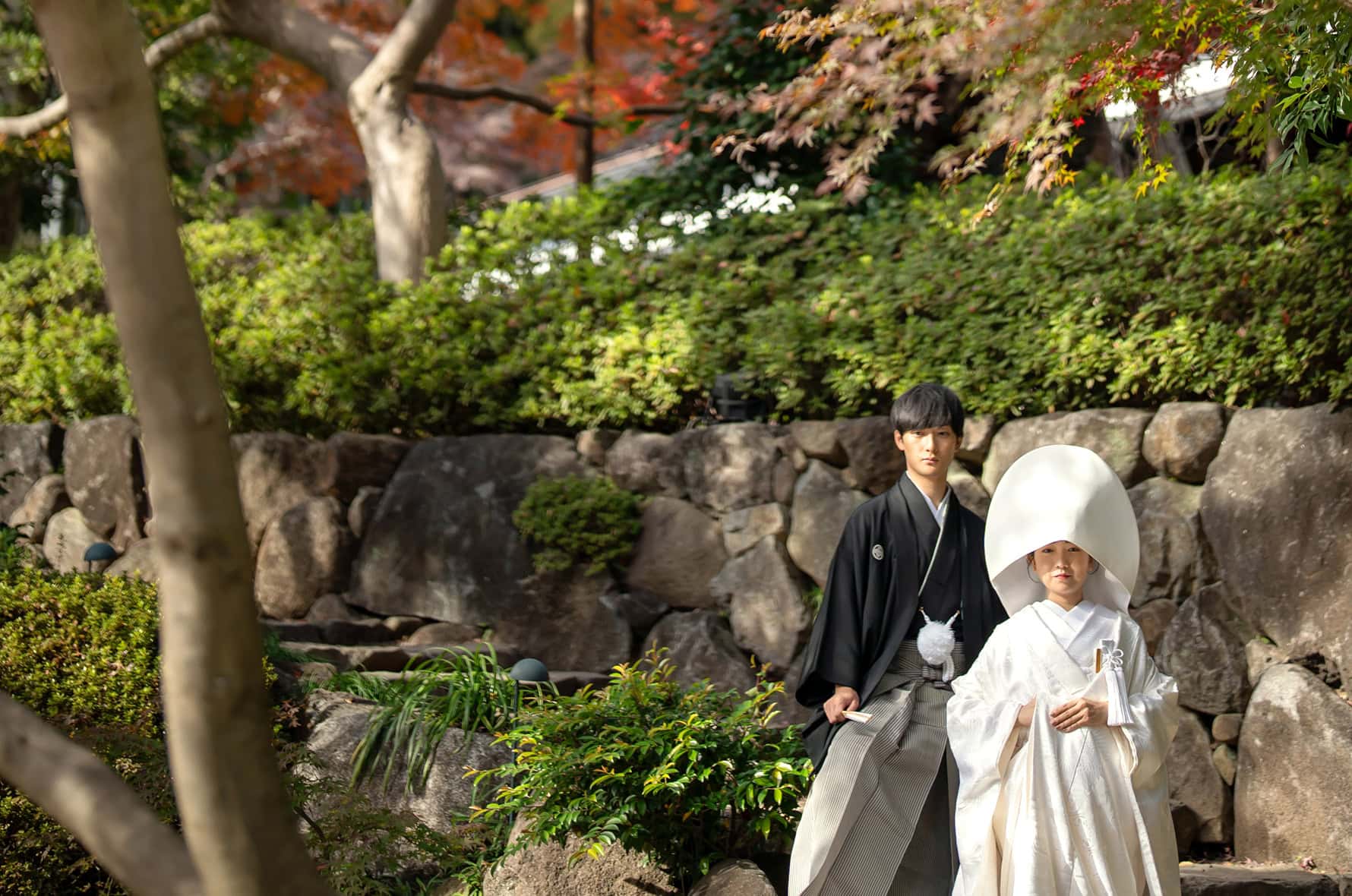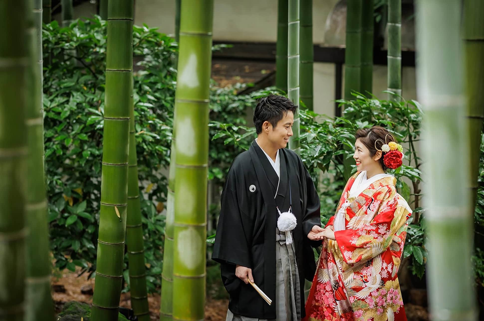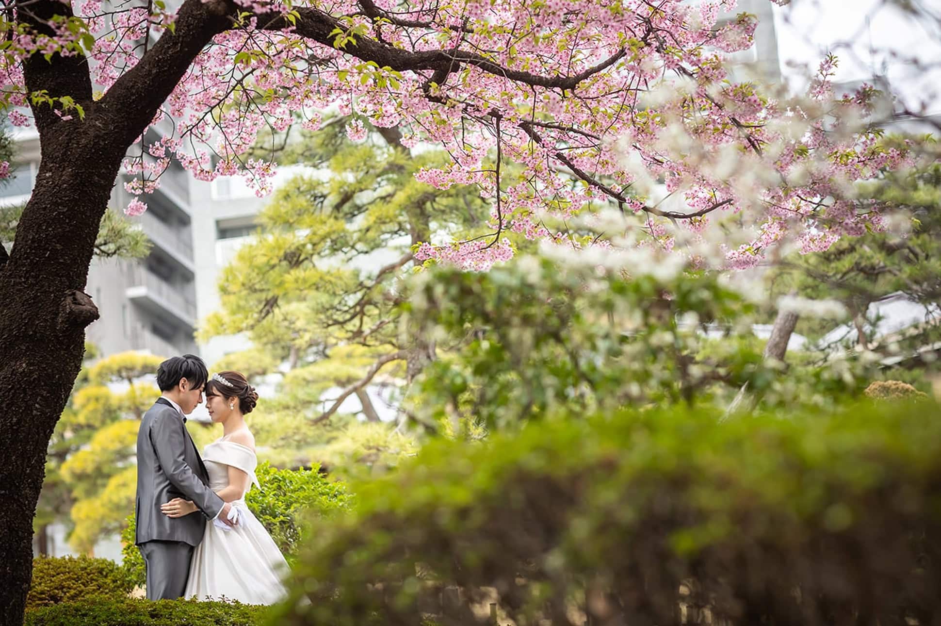 舞台は、約一万坪の敷地内に広がる広大な日本庭園。約400年の歴史を持つ庭園は、四季折々の美しい表情を見せます。庭園内の様々なスポットだけでなく、チャペルや神殿など園内には数多くのロケーションが。衣裳やおふたりのイメージに合わせて、バリエーション豊かな写真を残していただくことができます。