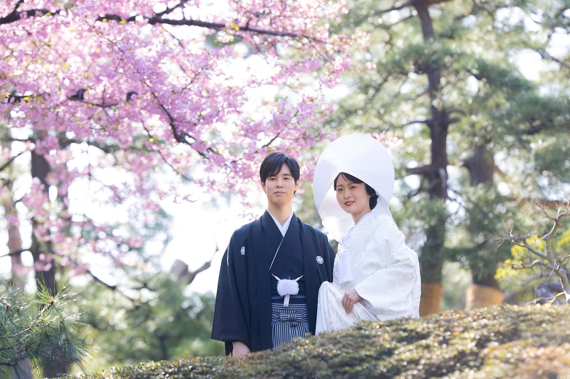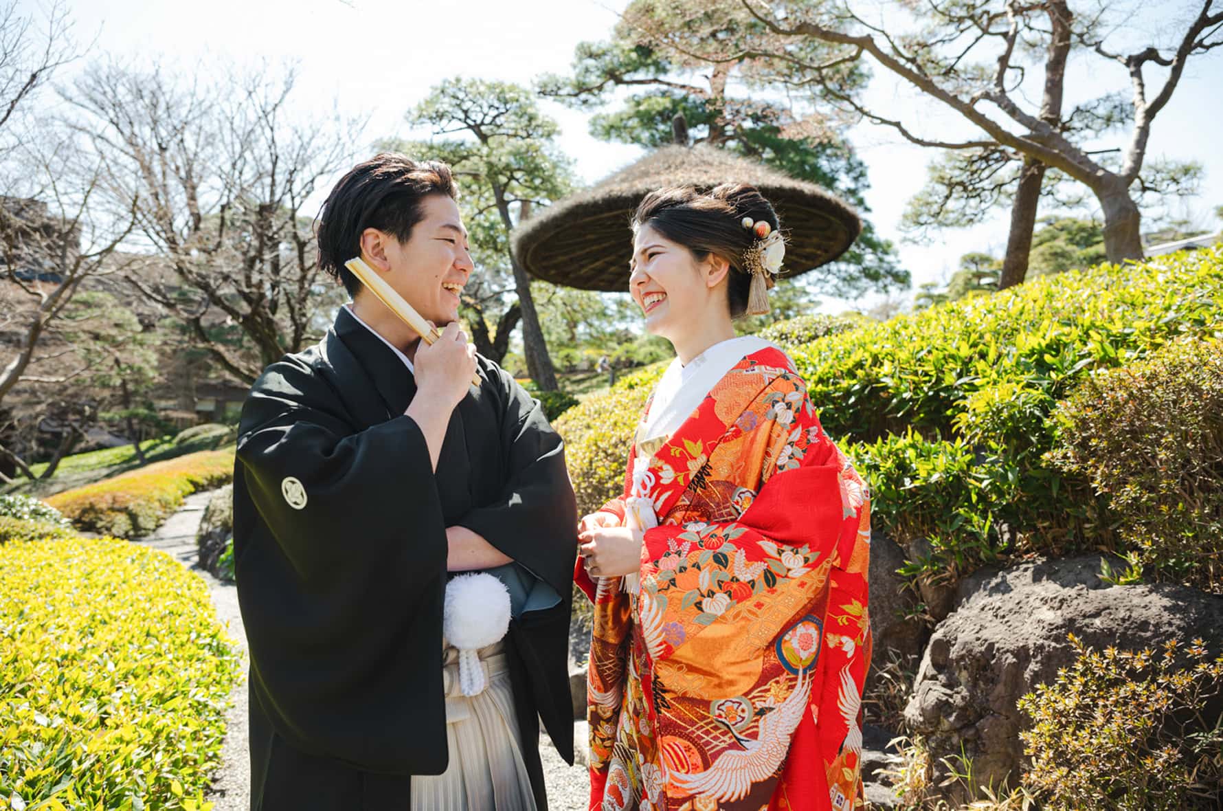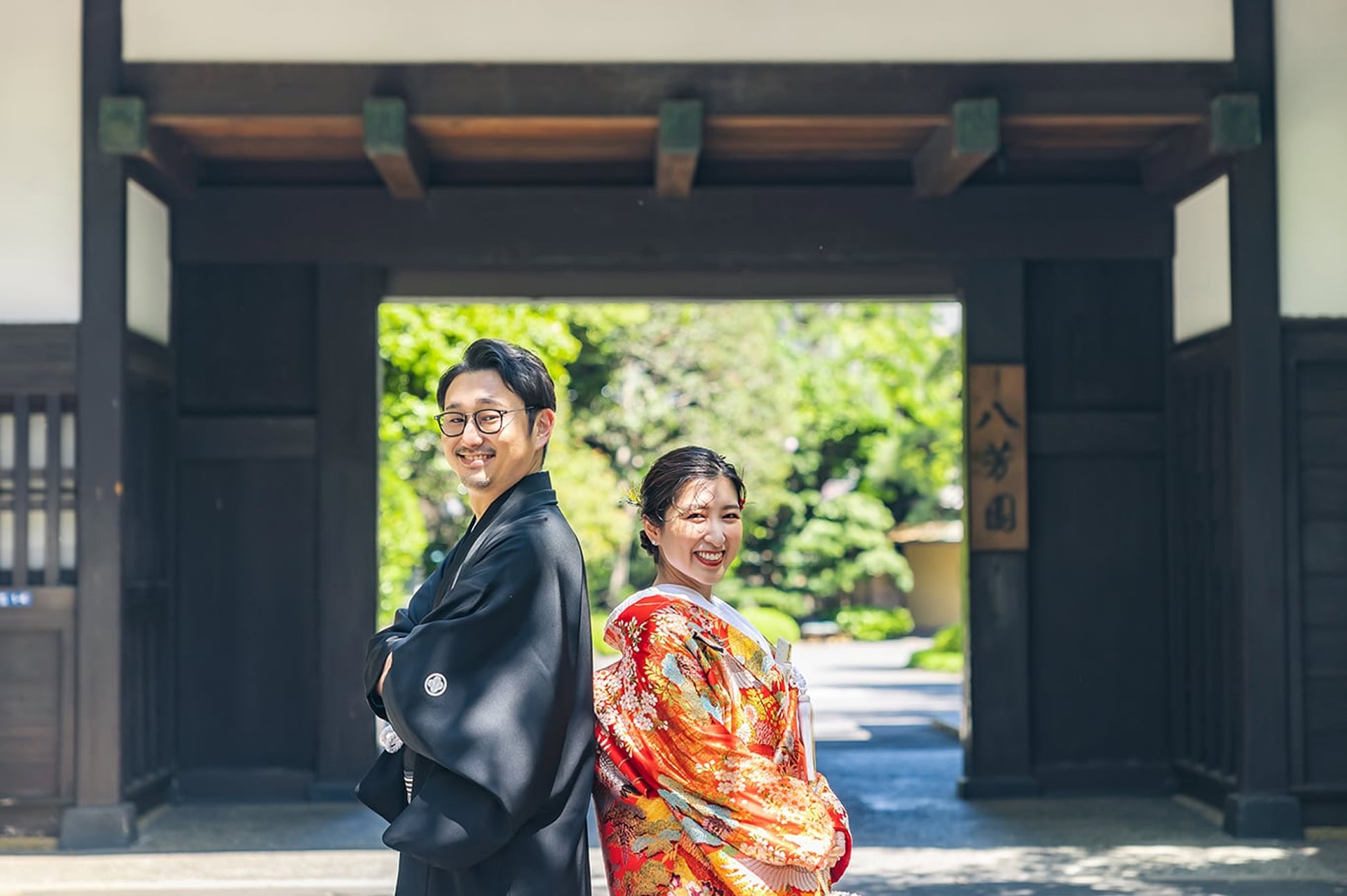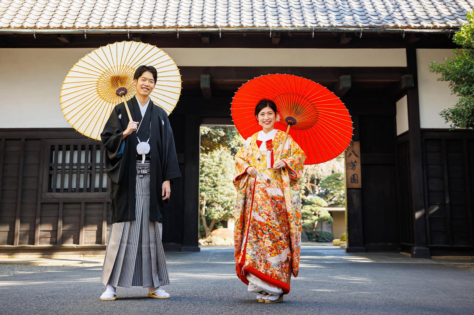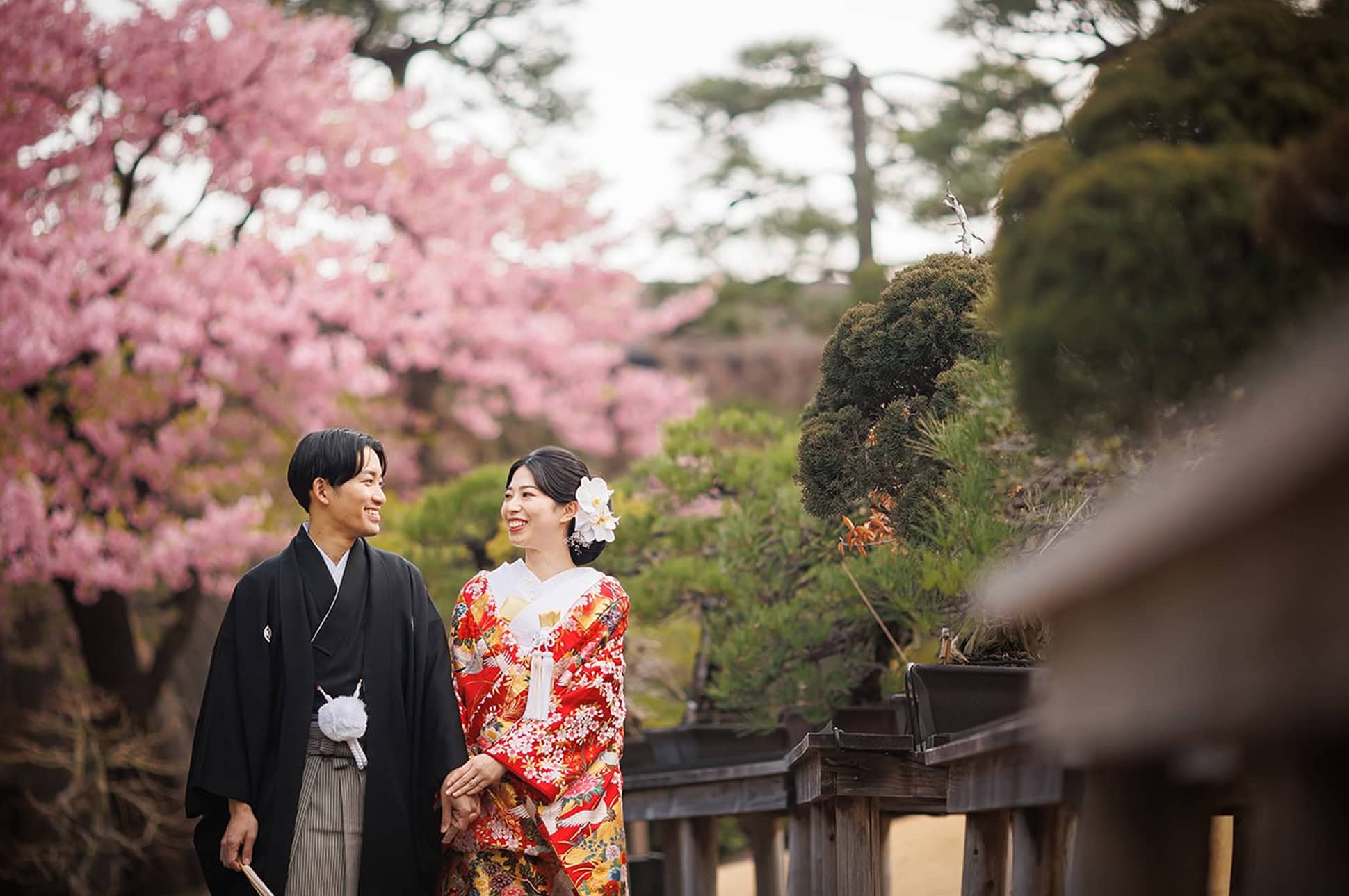 舞台は、約一万坪の敷地内に広がる広大な日本庭園。約400年の歴史を持つ庭園は、四季折々の美しい表情を見せます。庭園内の様々なスポットだけでなく、チャペルや神殿など園内には数多くのロケーションが。衣裳やおふたりのイメージに合わせて、バリエーション豊かな写真を残していただくことができます。