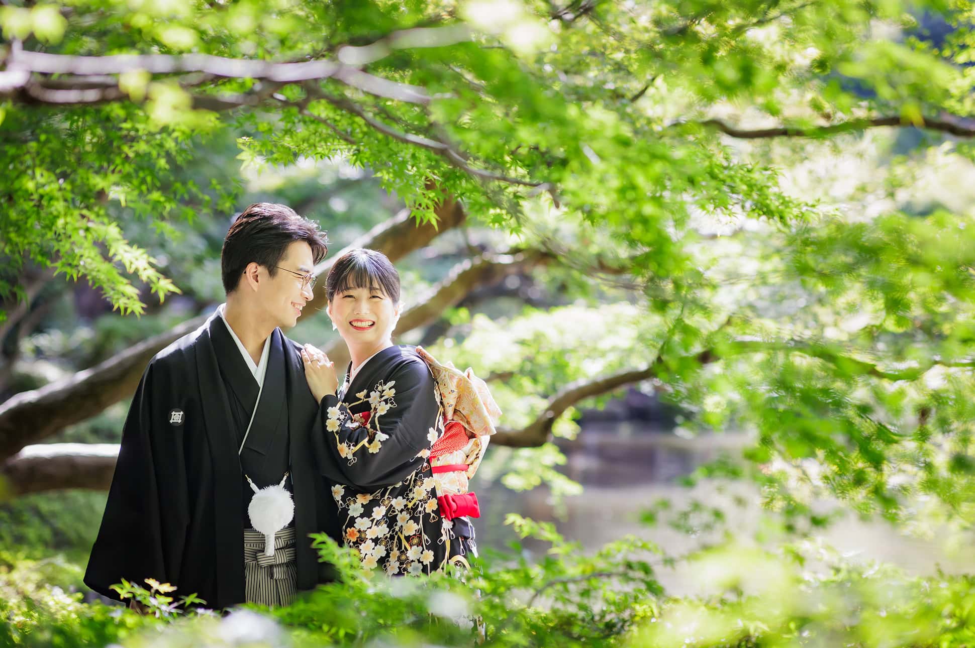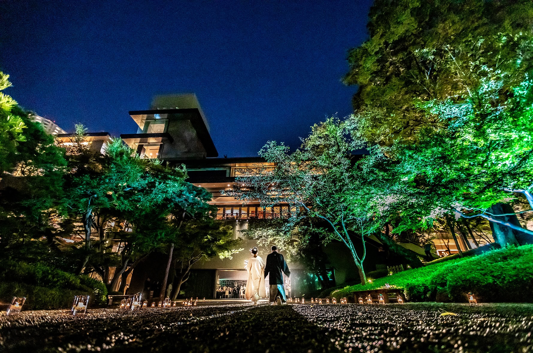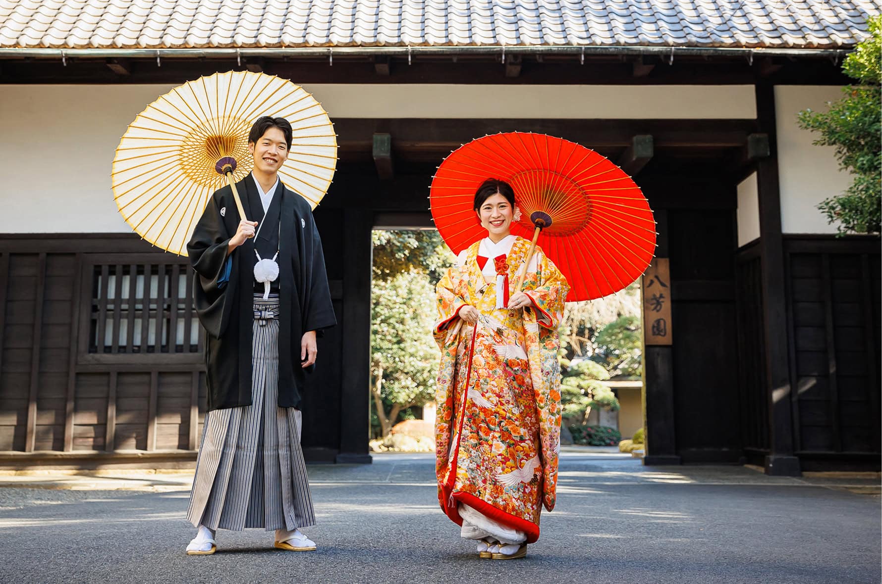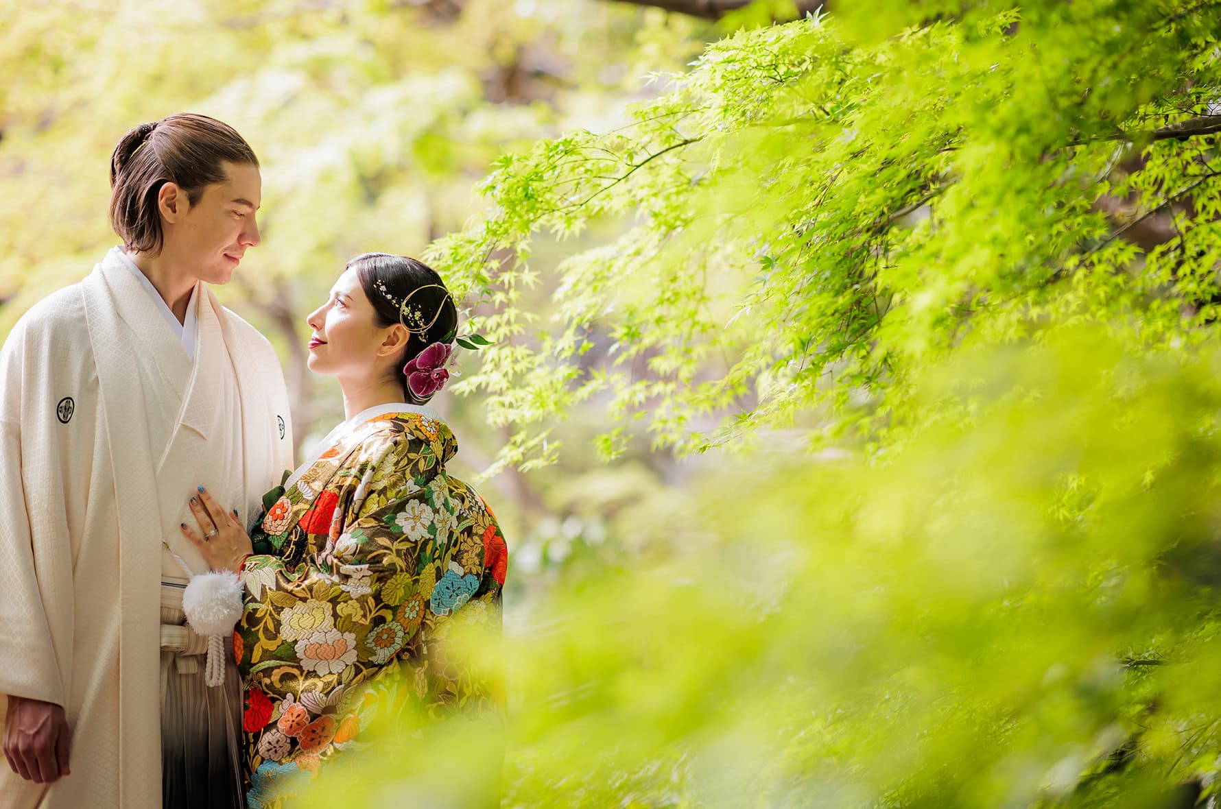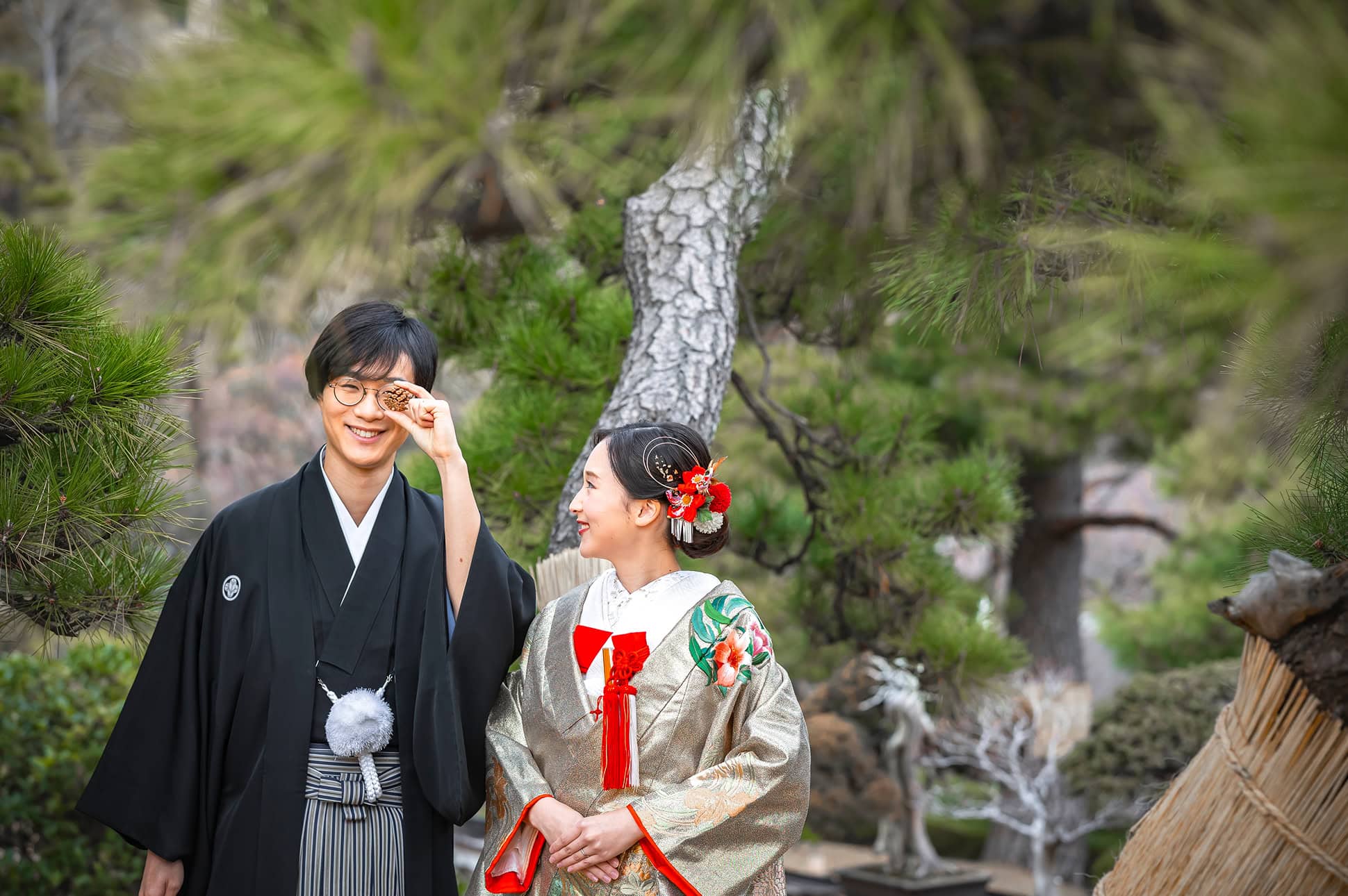 舞台は、約一万坪の敷地内に広がる広大な日本庭園。約400年の歴史を持つ庭園は、四季折々の美しい表情を見せます。庭園内の様々なスポットだけでなく、チャペルや神殿など園内には数多くのロケーションが。衣裳やおふたりのイメージに合わせて、バリエーション豊かな写真を残していただくことができます。
