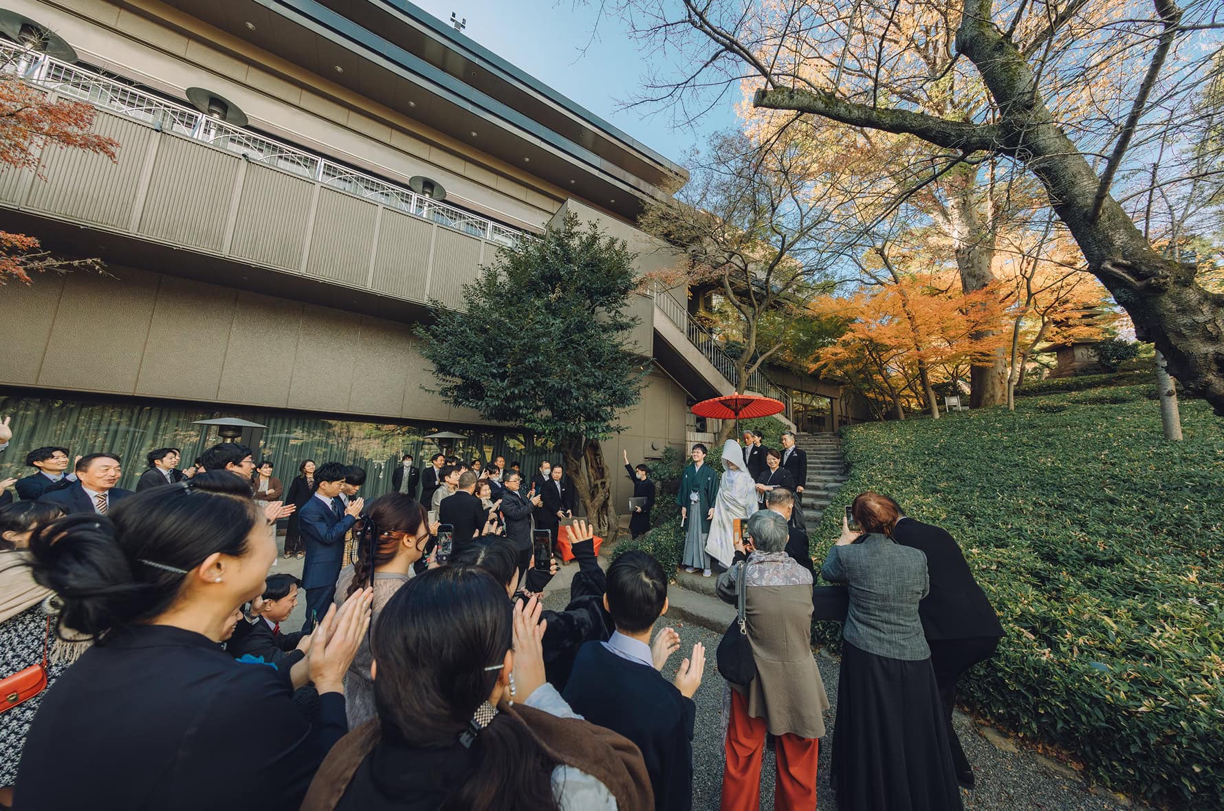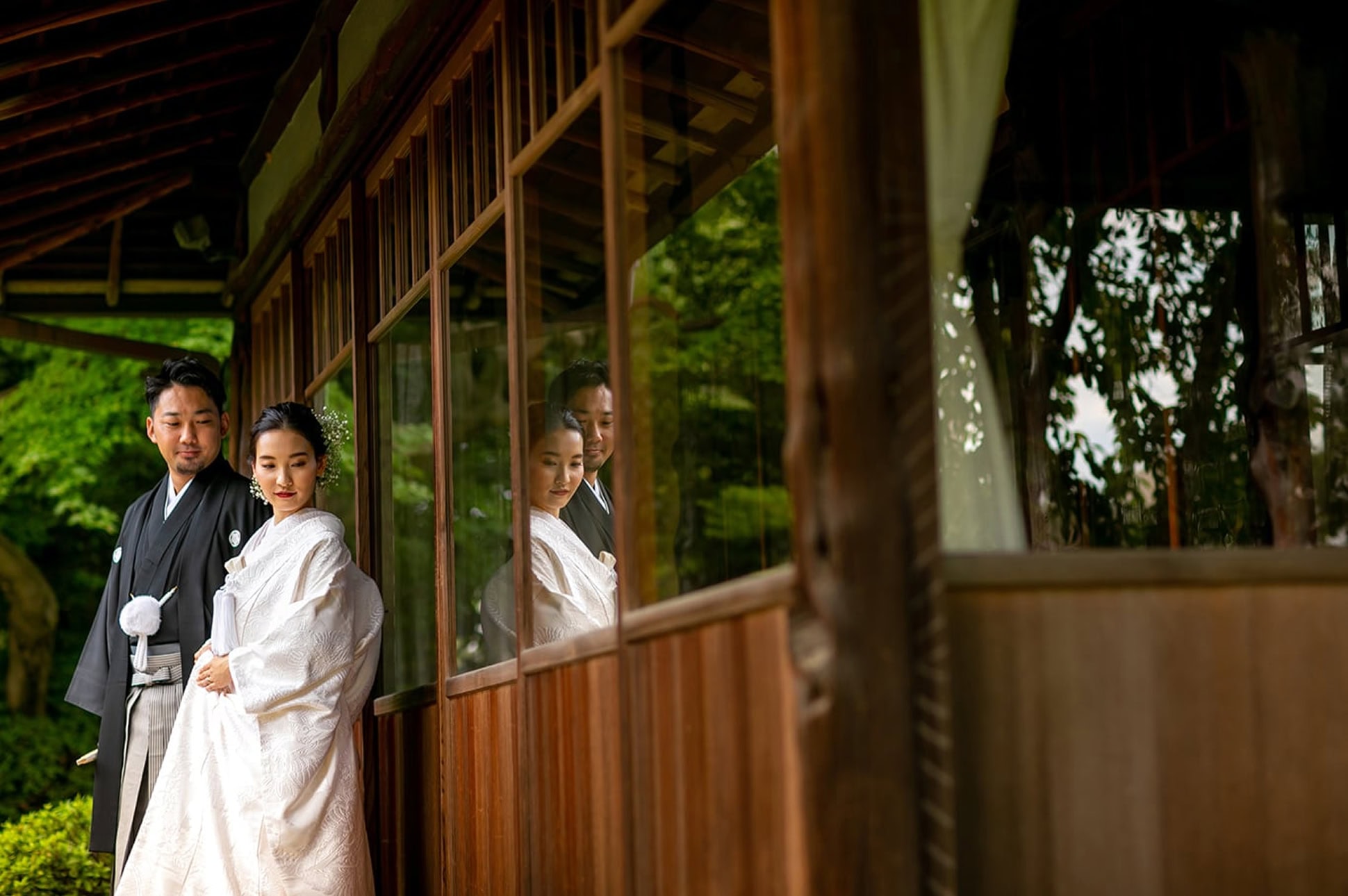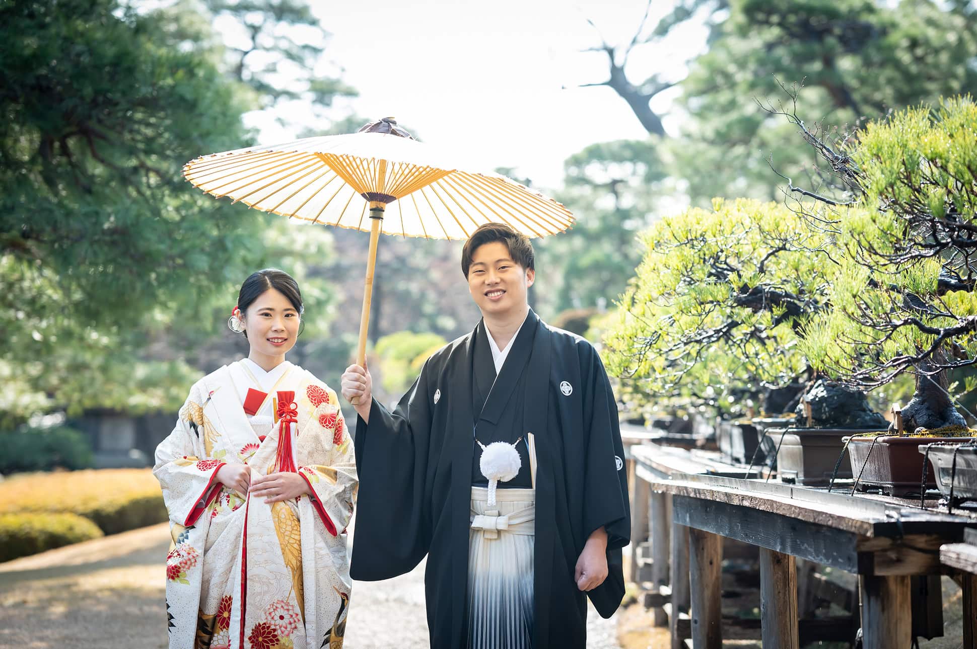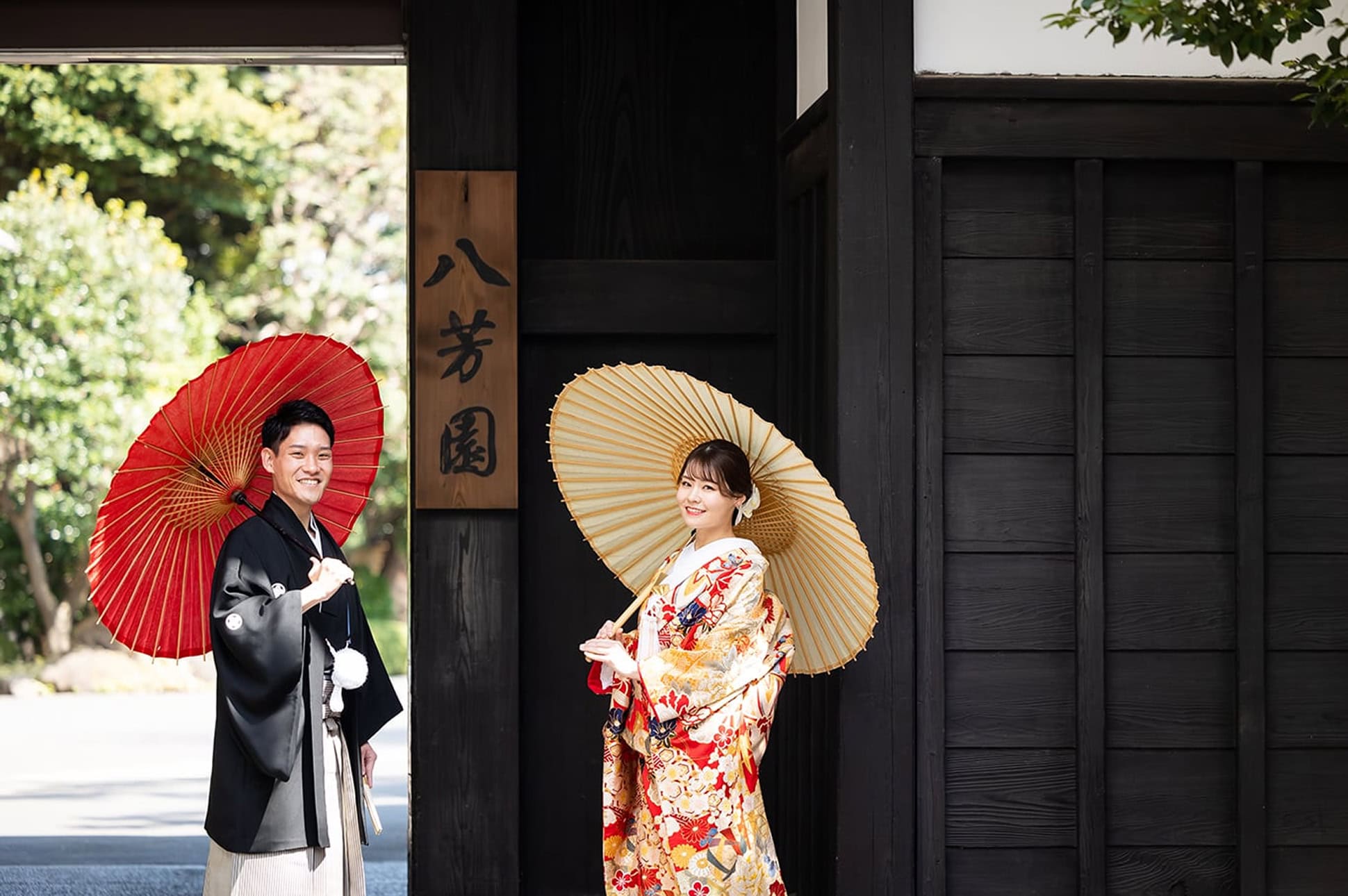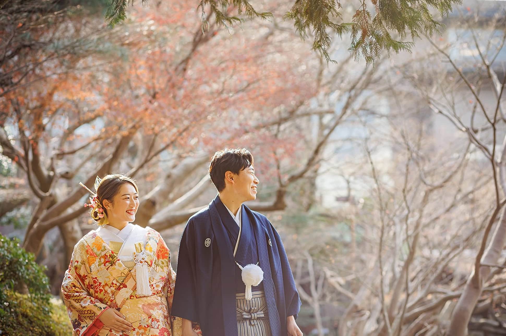 舞台は、約一万坪の敷地内に広がる広大な日本庭園。約400年の歴史を持つ庭園は、四季折々の美しい表情を見せます。庭園内の様々なスポットだけでなく、チャペルや神殿など園内には数多くのロケーションが。衣裳やおふたりのイメージに合わせて、バリエーション豊かな写真を残していただくことができます。