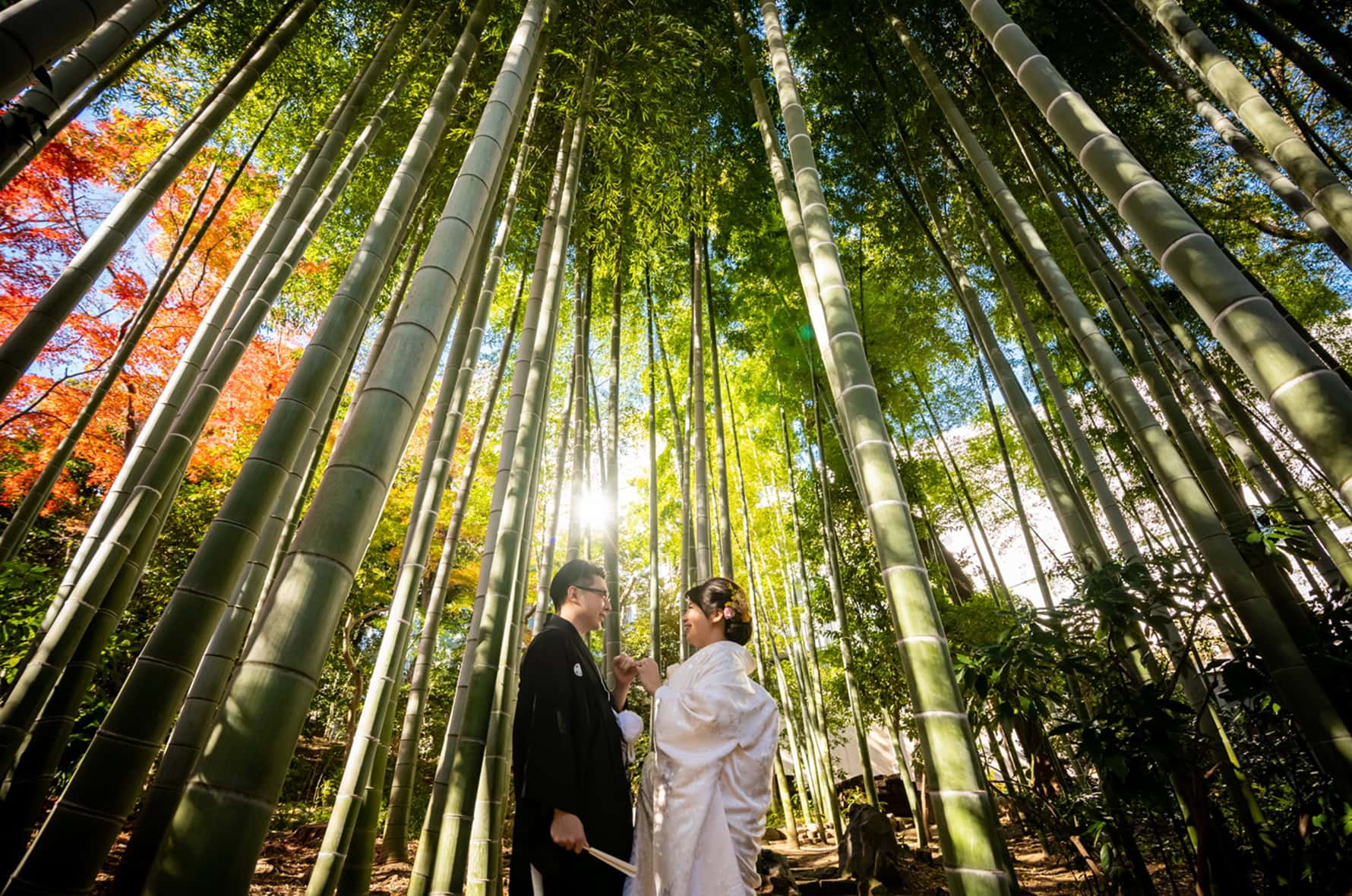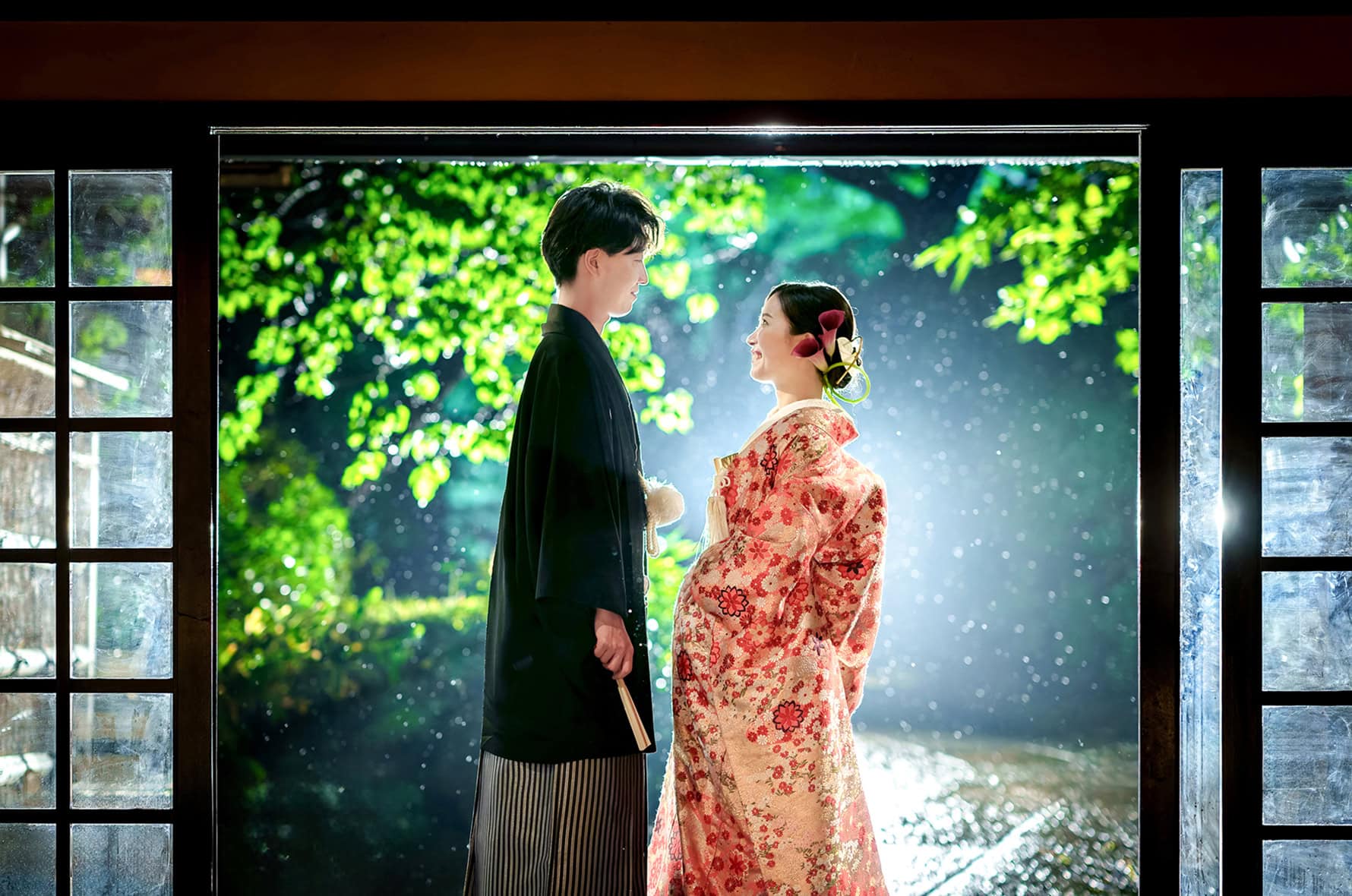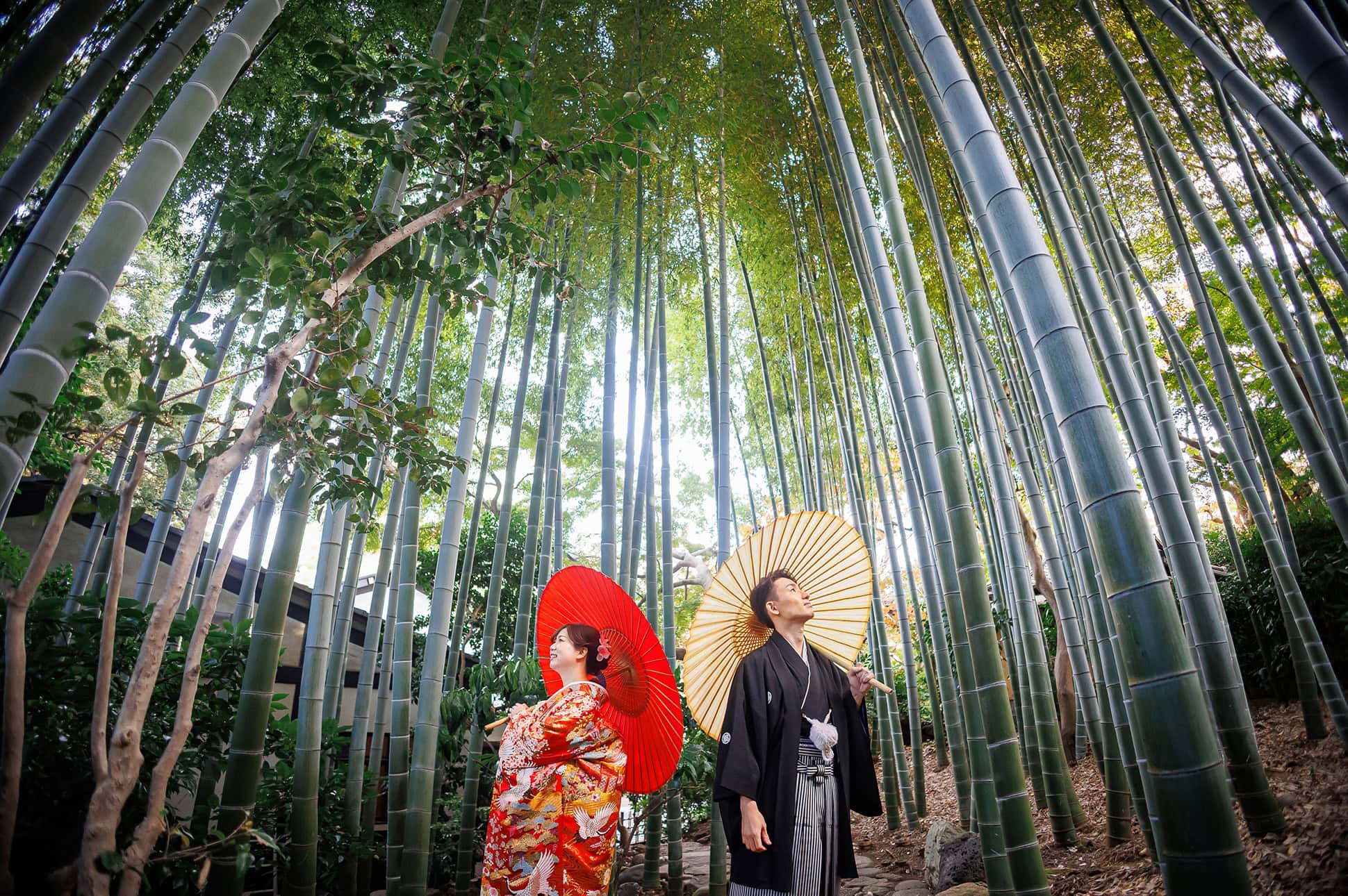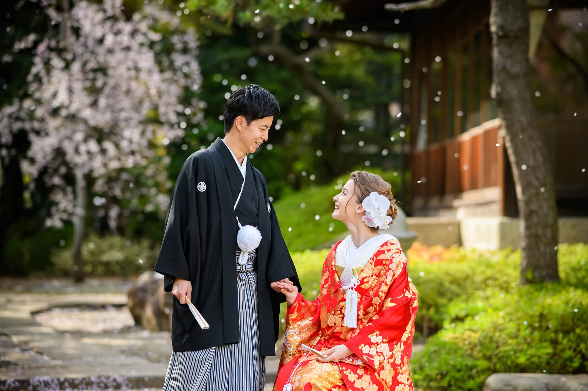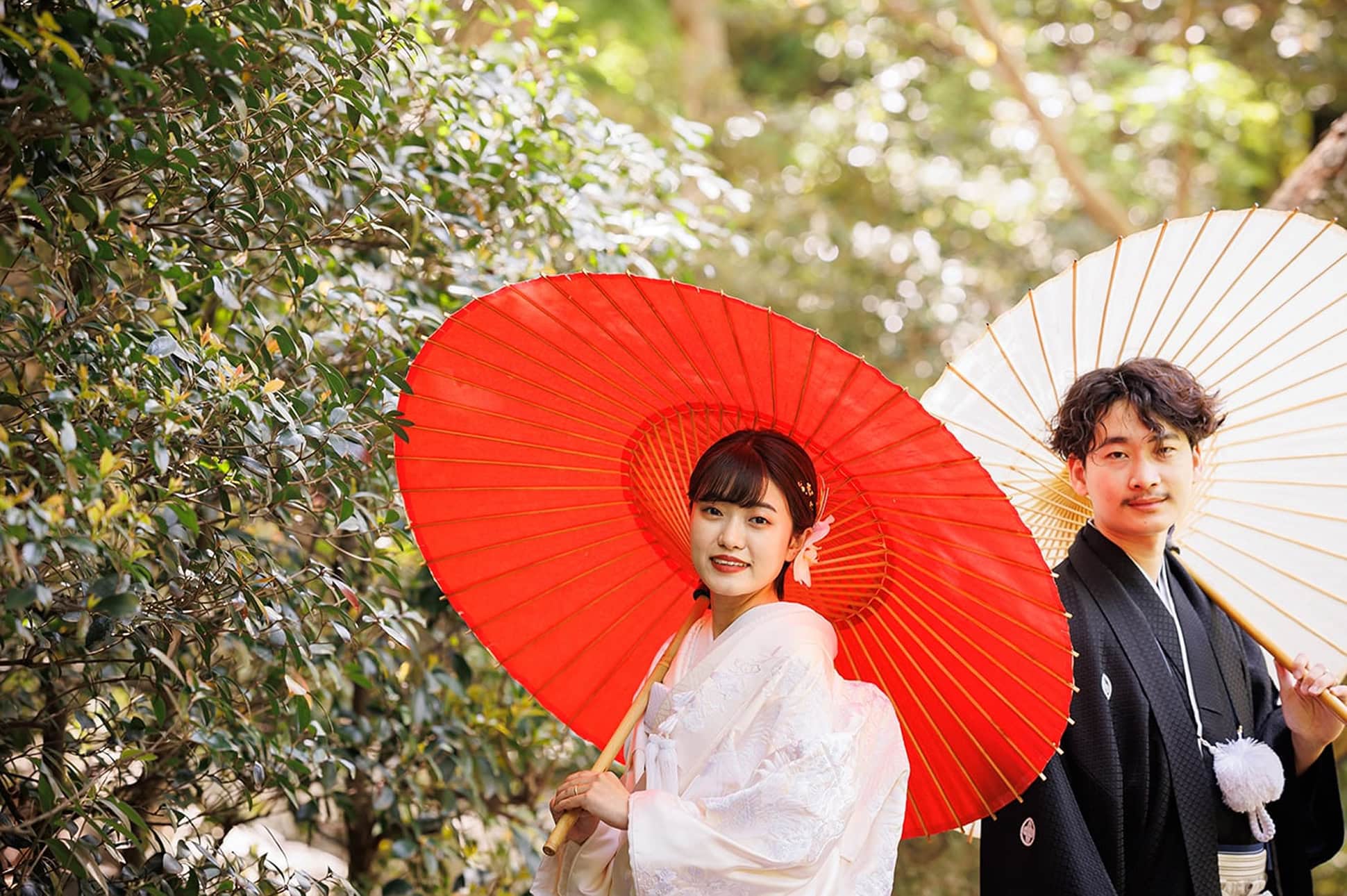 舞台は、約一万坪の敷地内に広がる広大な日本庭園。約400年の歴史を持つ庭園は、四季折々の美しい表情を見せます。庭園内の様々なスポットだけでなく、チャペルや神殿など園内には数多くのロケーションが。衣裳やおふたりのイメージに合わせて、バリエーション豊かな写真を残していただくことができます。