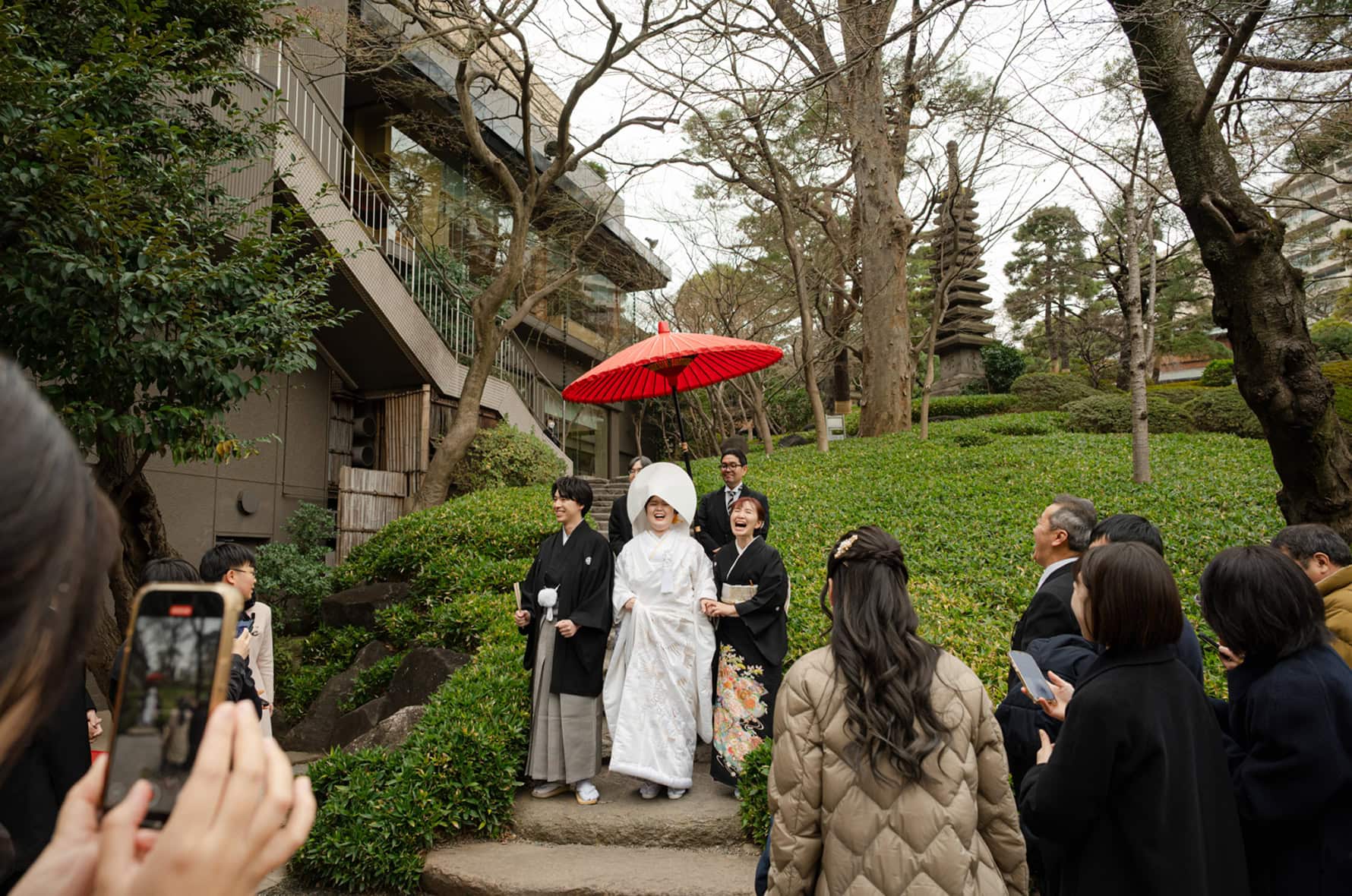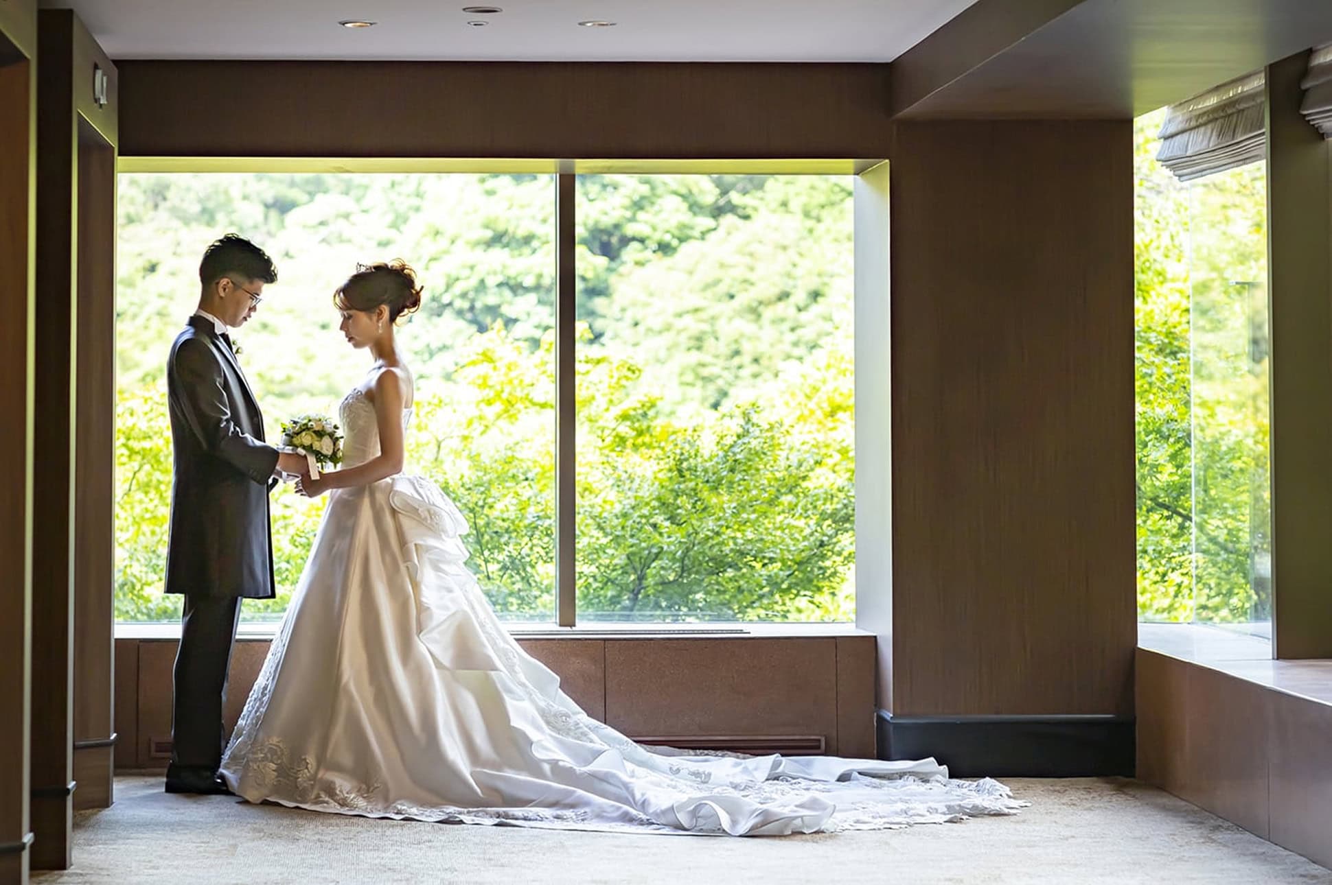 当日ご指定のお時間に八芳園本館ロビーにお越しいただきます。撮影終了後は、館内のレストランをご利用いただくことも可能でございます。